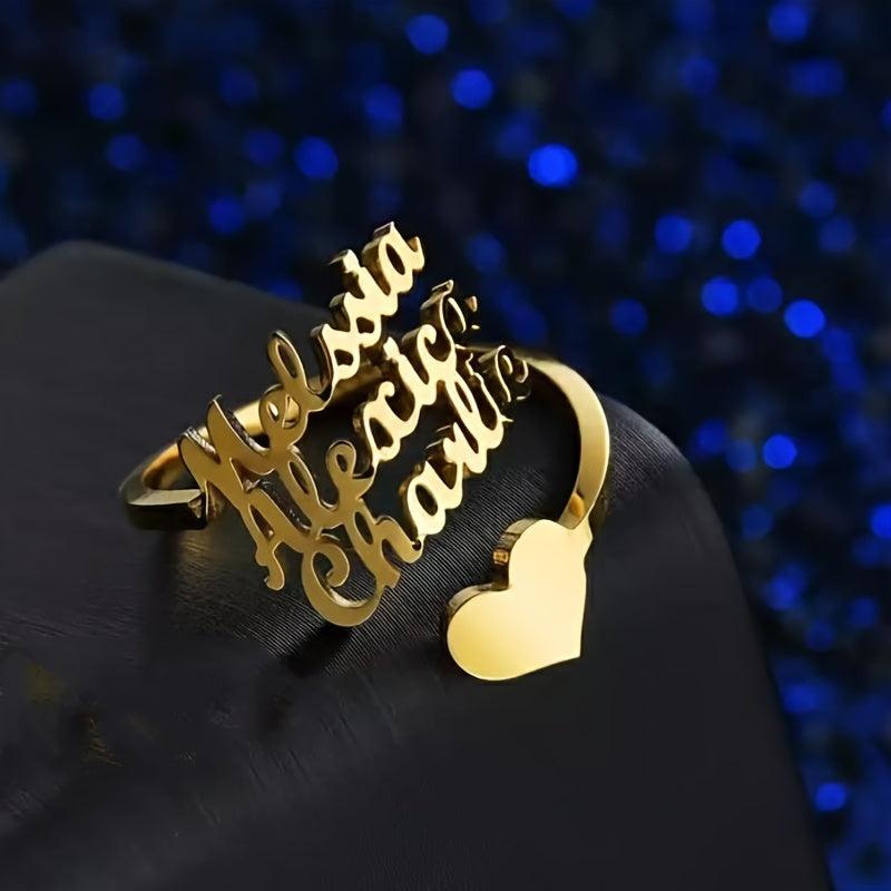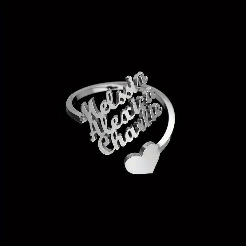 This beautiful personalized ring features a heart design with custom name engraving. It is adjustable and makes an ideal gift for mothers or women.