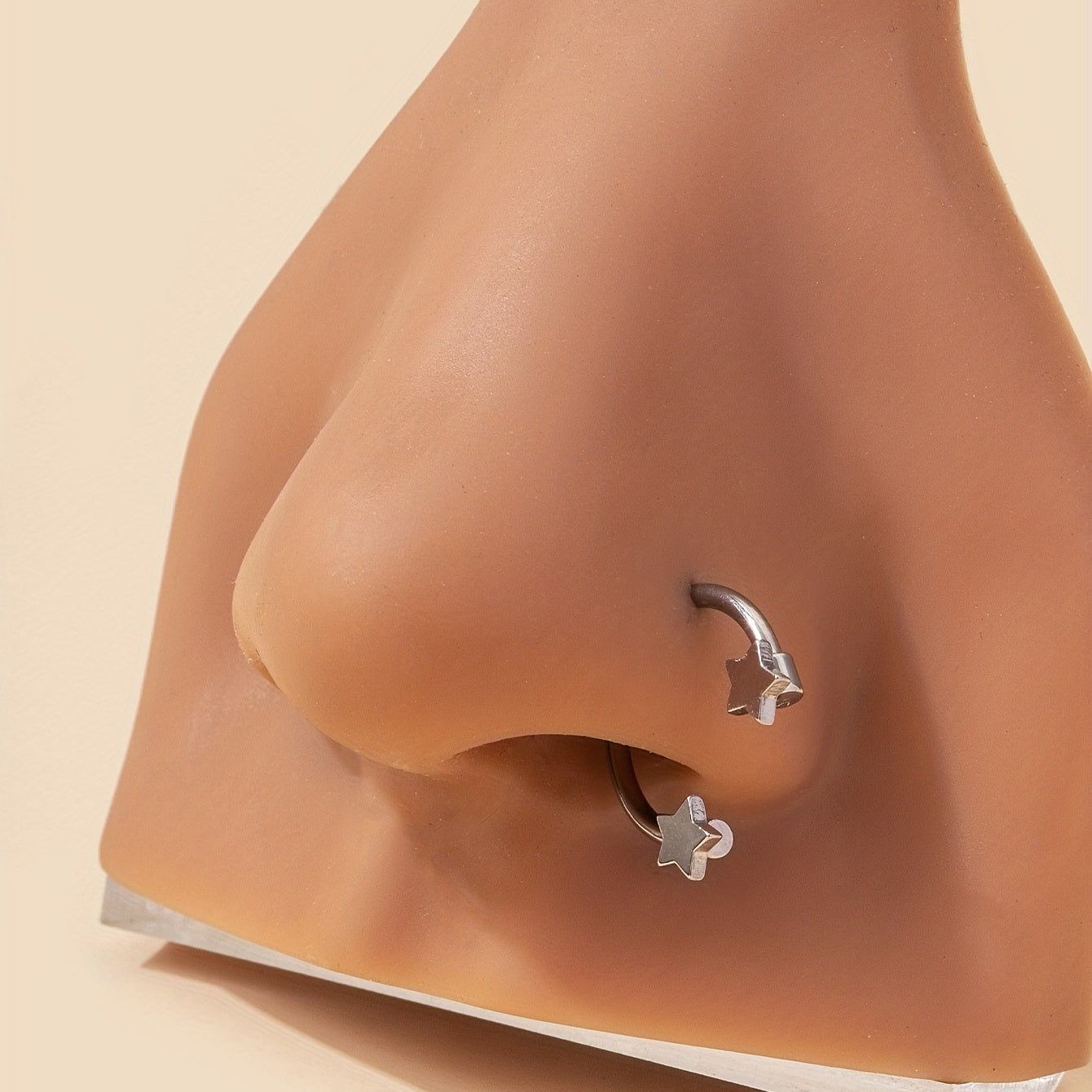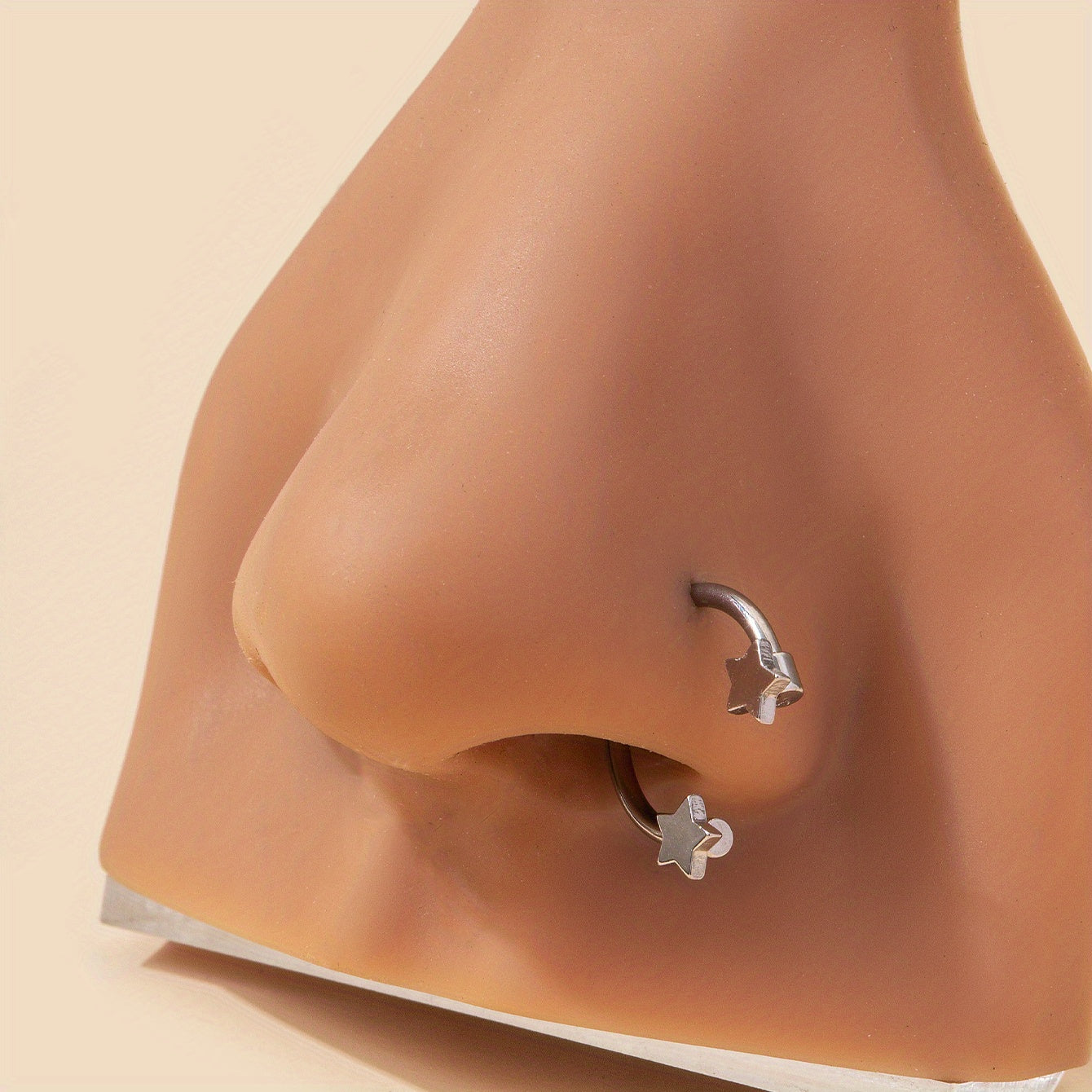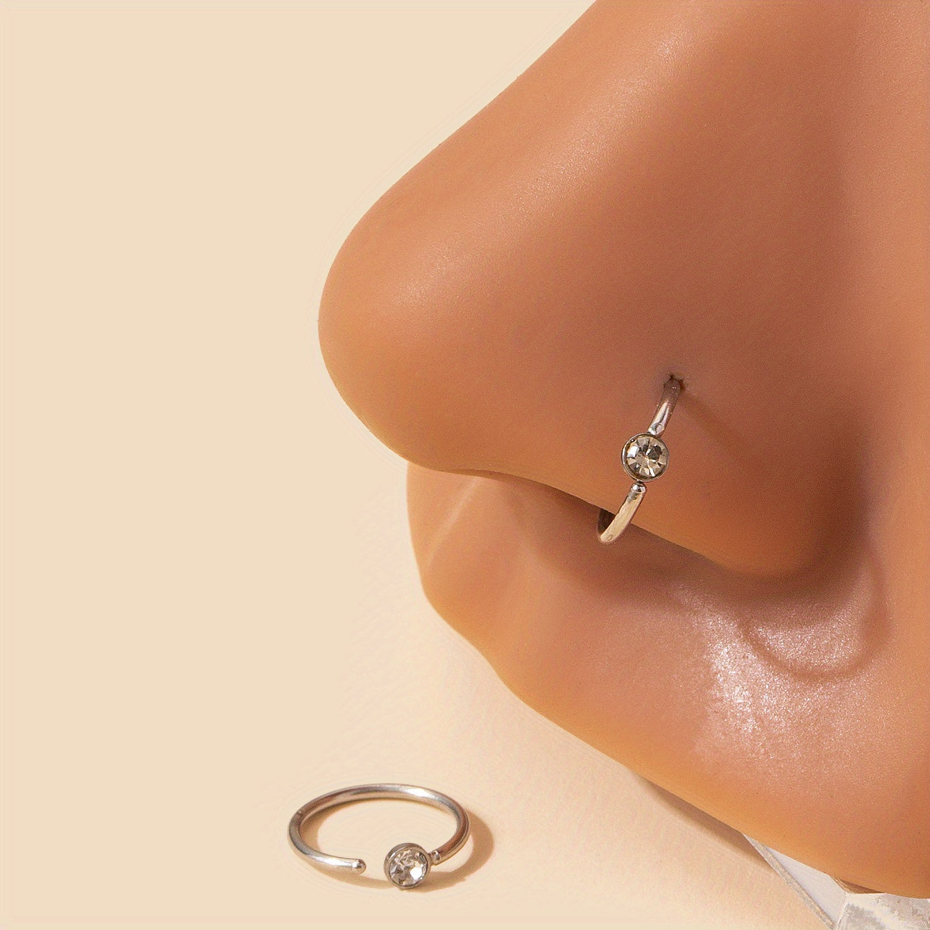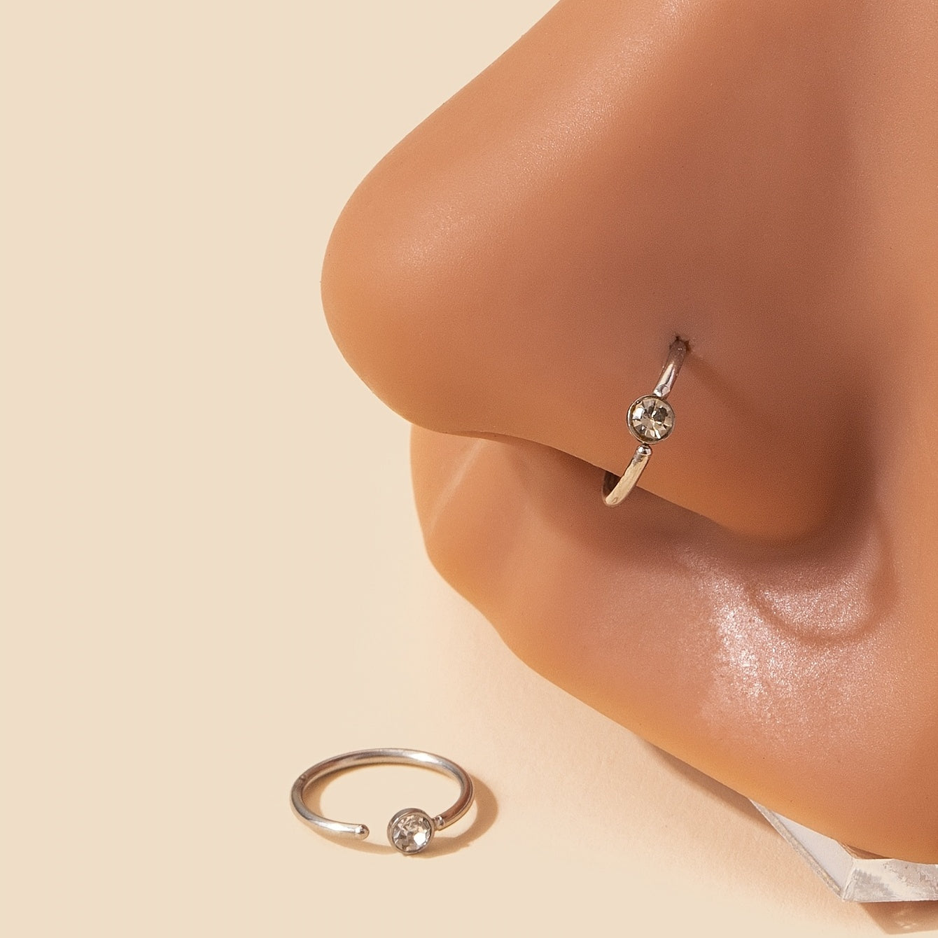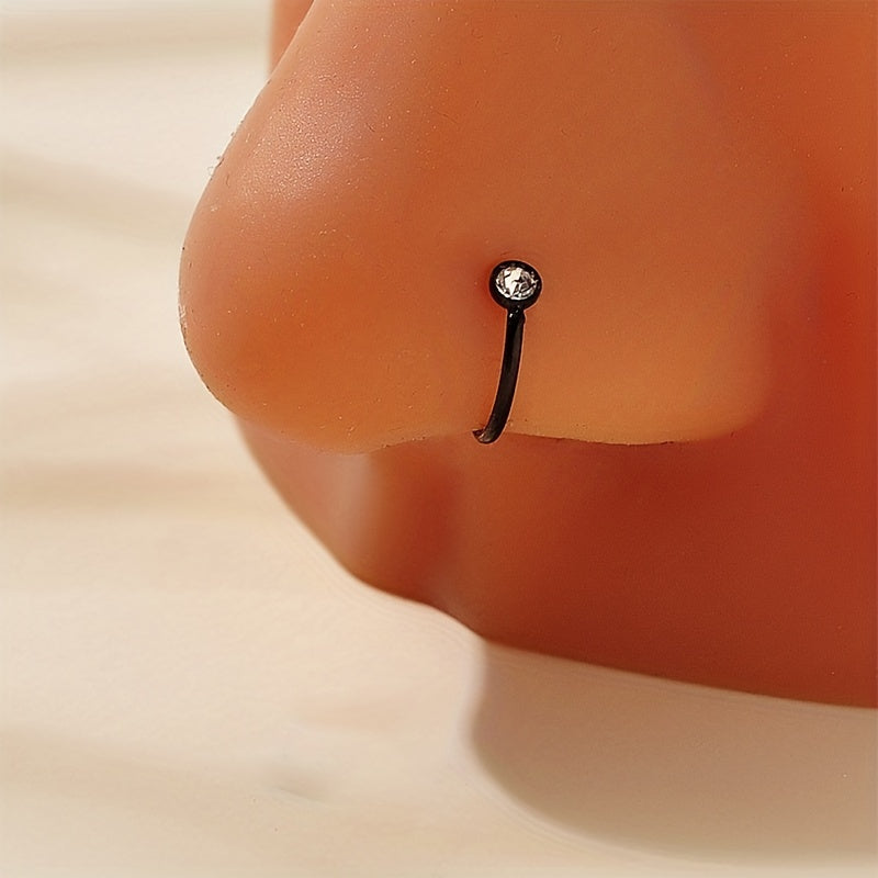 This C shaped nose ring is made of stainless steel and features a zircon inlay, perfect for body piercing needs.