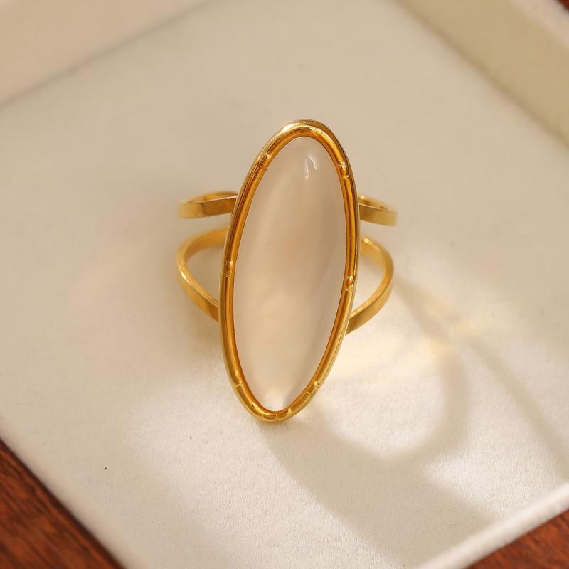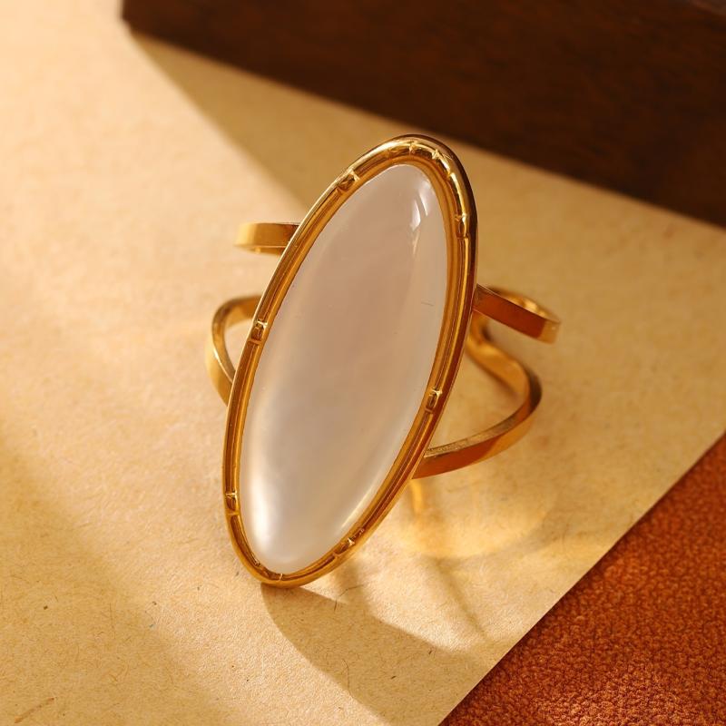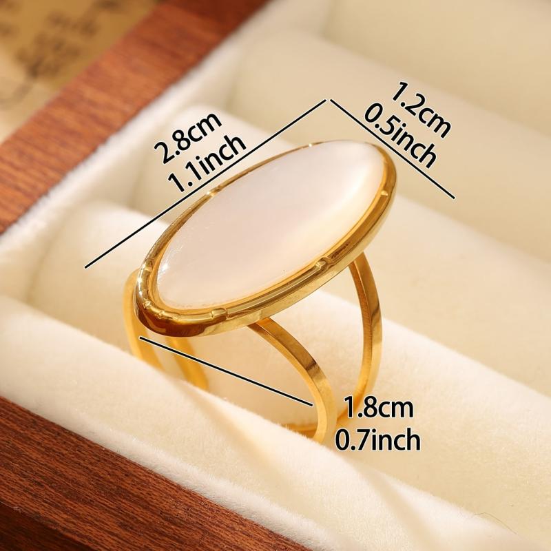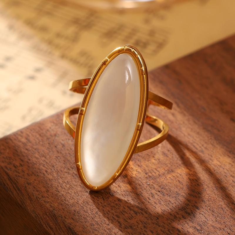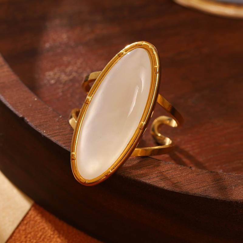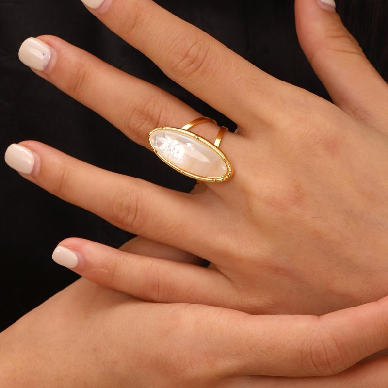 This stainless steel ring features natural iridescent mother of pearl, making it a versatile gift for teachers, back to school, graduation, or any season. Add a touch of bohemian style to any outfit!