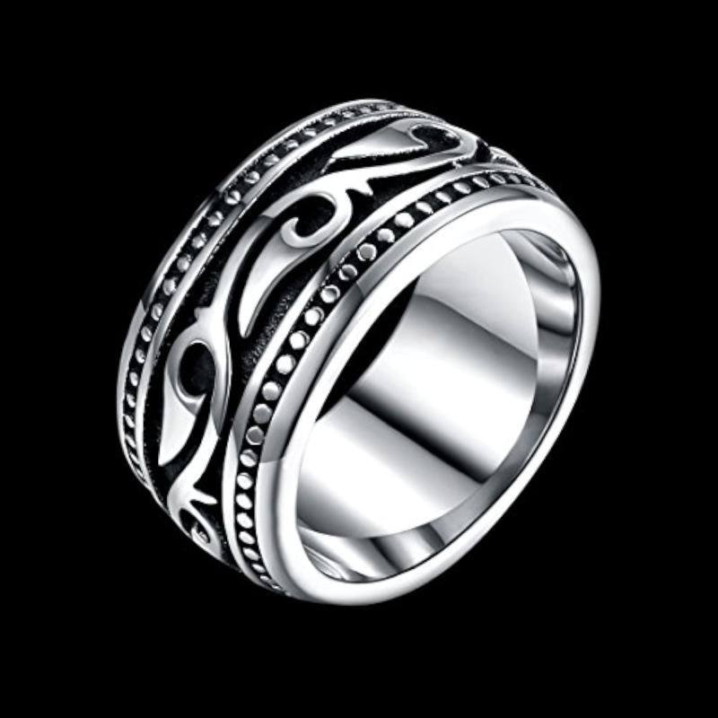 This stainless steel ring features an oxidised design, ideal for adding a touch of style to your look.
