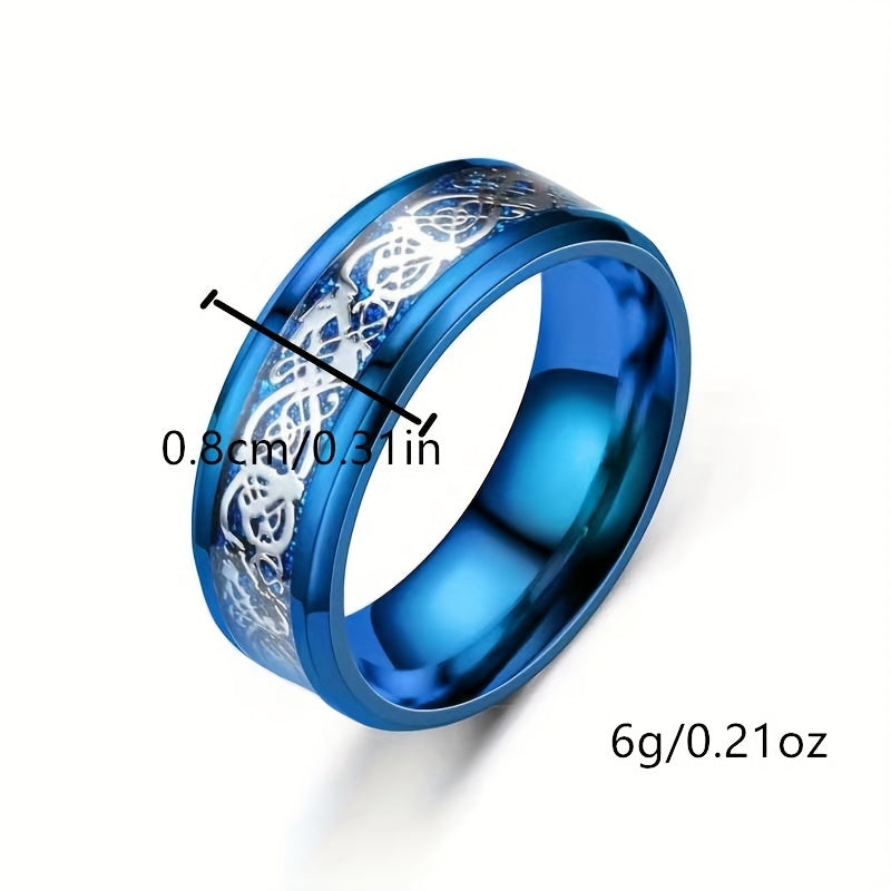 This stainless steel ring features a dragon pattern, making it a bold and stylish accessory for men.
