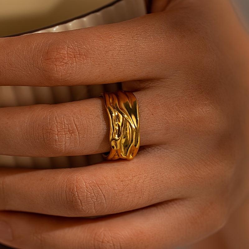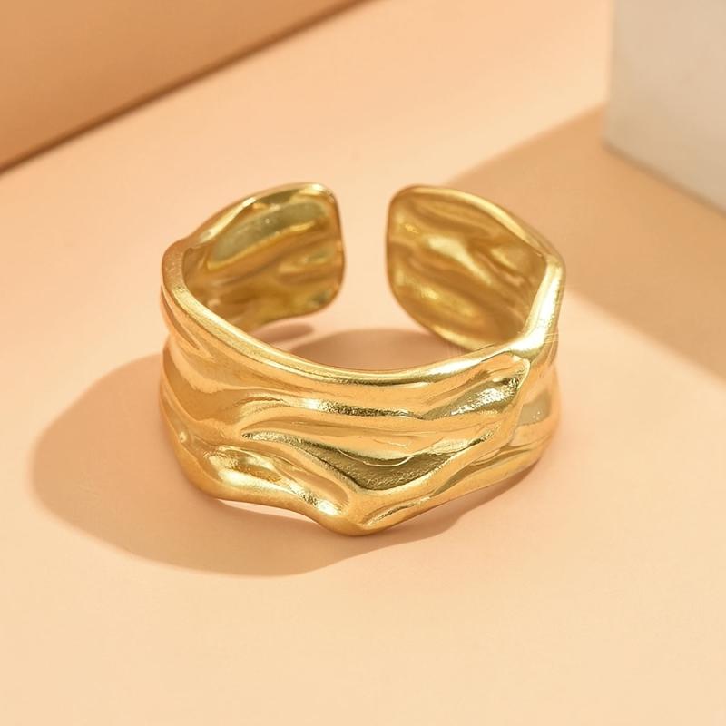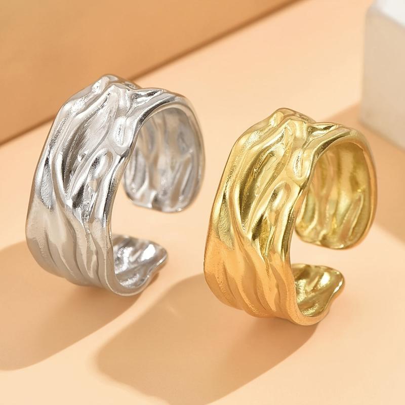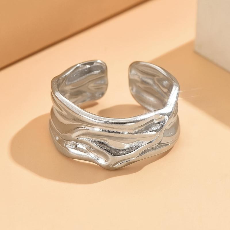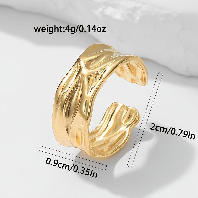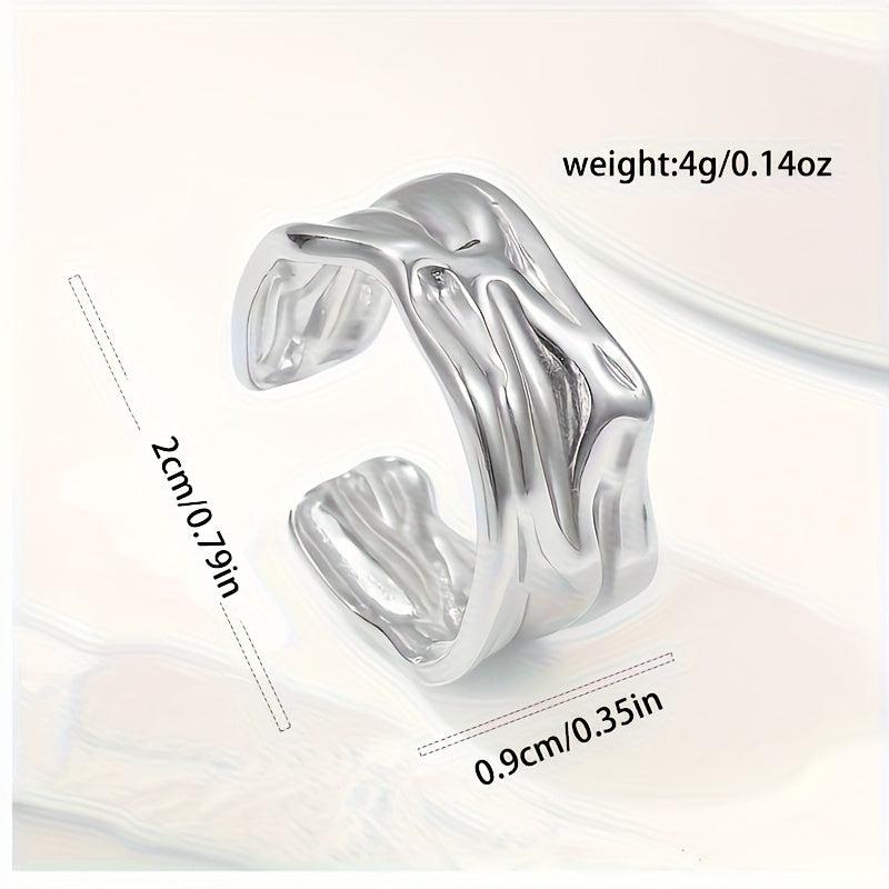 Elevate your style with this unique stainless steel ring featuring an irregular texture. Suitable for both casual attire and special occasions. Adjustable size for a perfect fit.