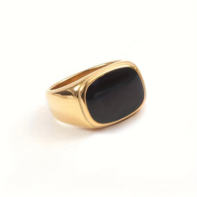 Golden toned band with oval stone, perfect for casual attire or vacation accessory.
