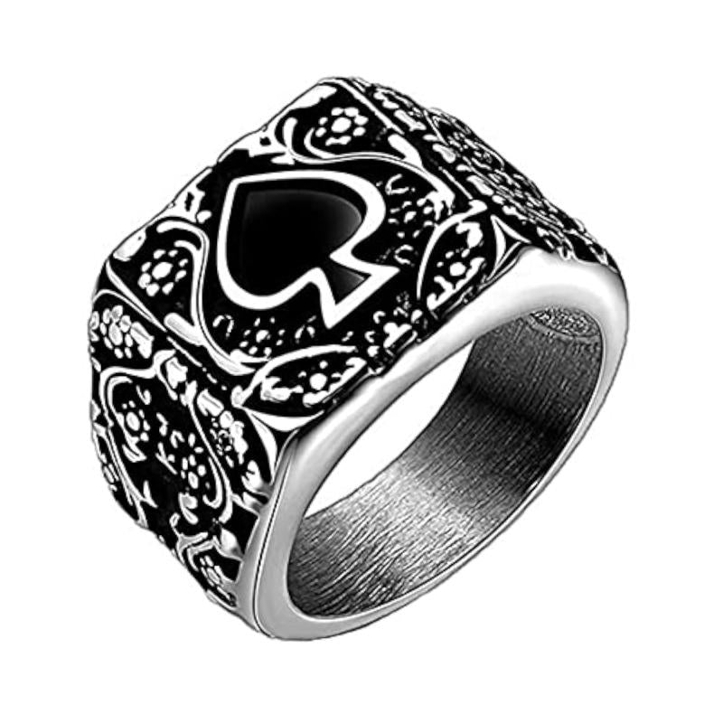 This charming stainless steel spade ring is perfect for boys who love a unique accessory. The oxidized finish adds a touch of edgy style to any outfit.