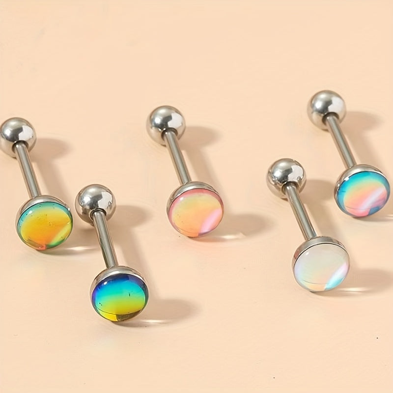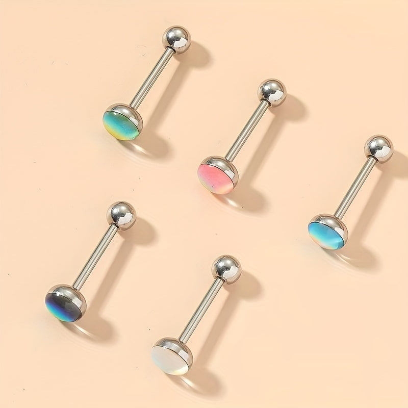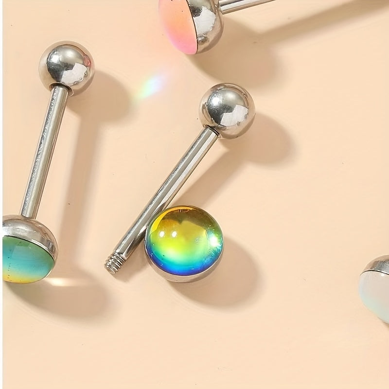 This stylish tongue ring is made of stainless steel, perfect for piercing. It features a straight rod design and dripping oil decoration.