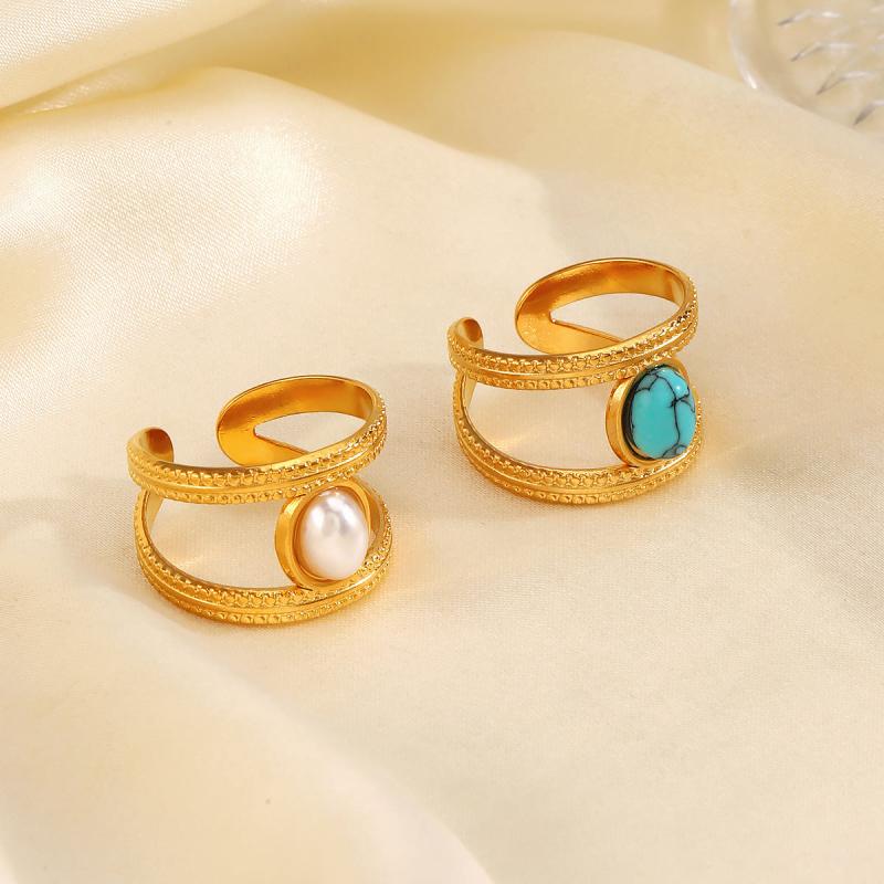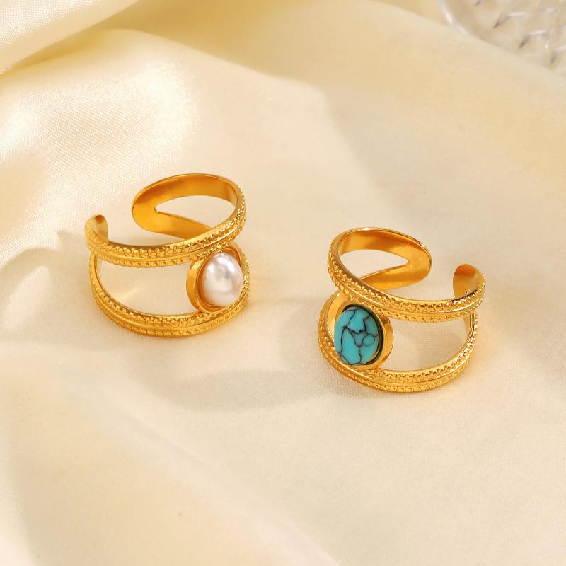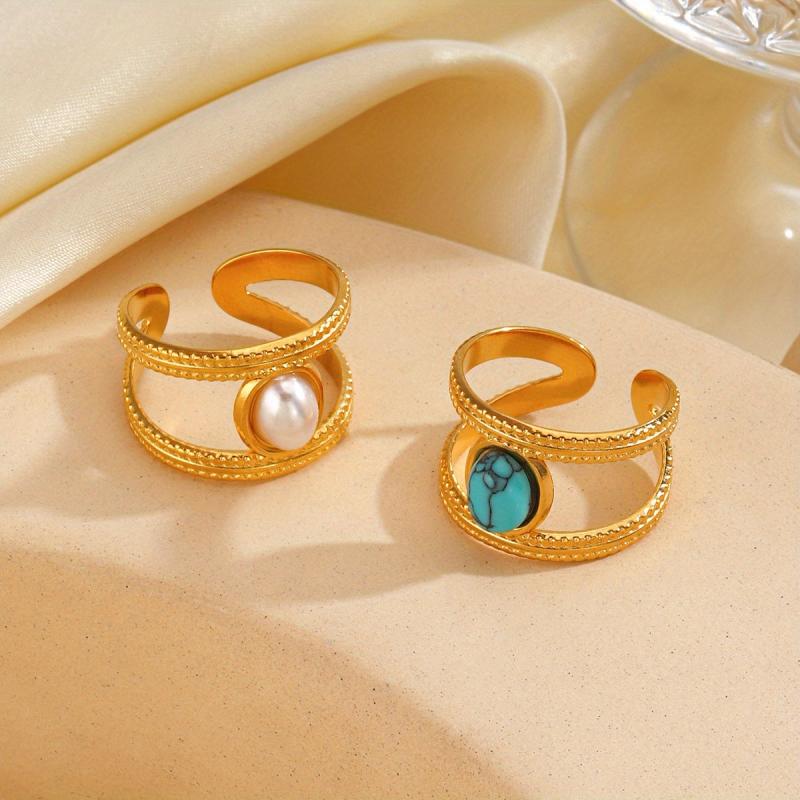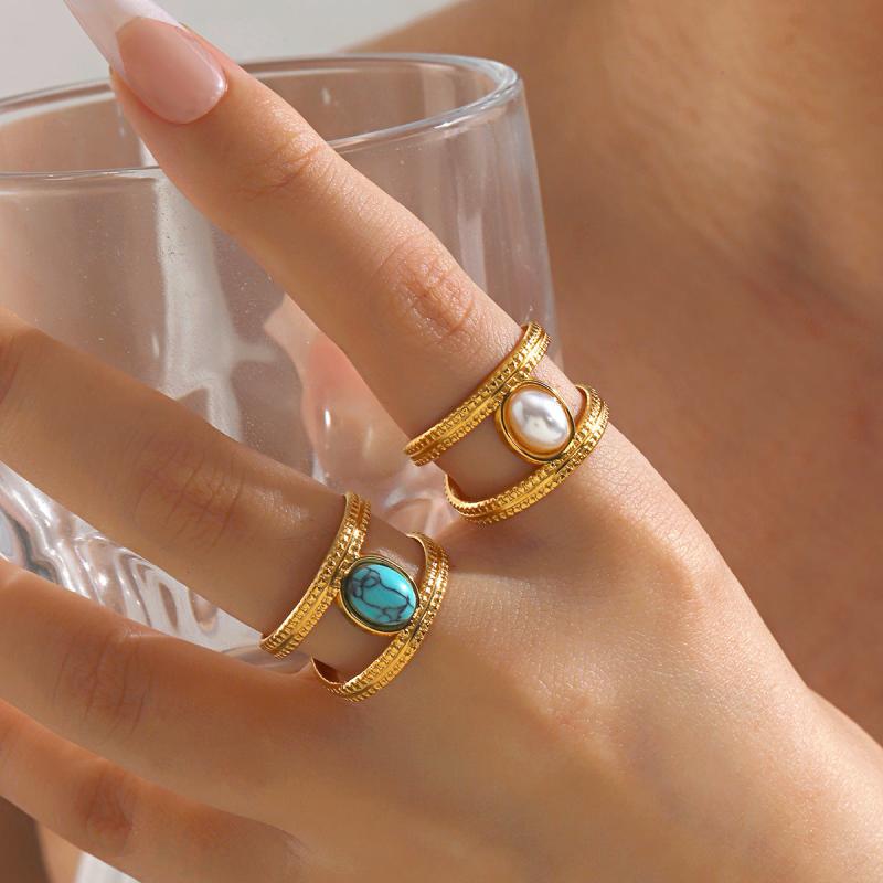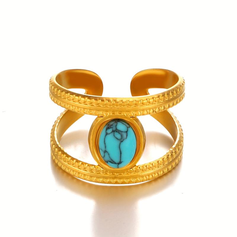 This stainless steel ring features synthetic turquoise inlay, perfect for daily wear and date nights. Its open design allows for easy stacking and mixing with other rings.