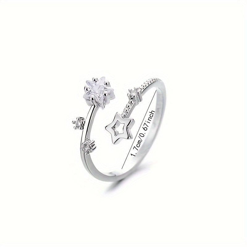 This stunning ring features a hollow out star design with sparkling cubic zirconia decoration. It is perfect for girls and makes a great party gift.