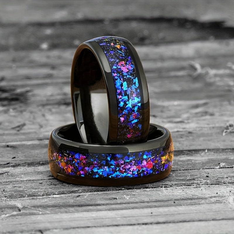 This beautiful ring is crafted with 316 stainless steel and features a stunning resin inlay that resembles a starry sky. Perfect for weddings, parties, or everyday wear.