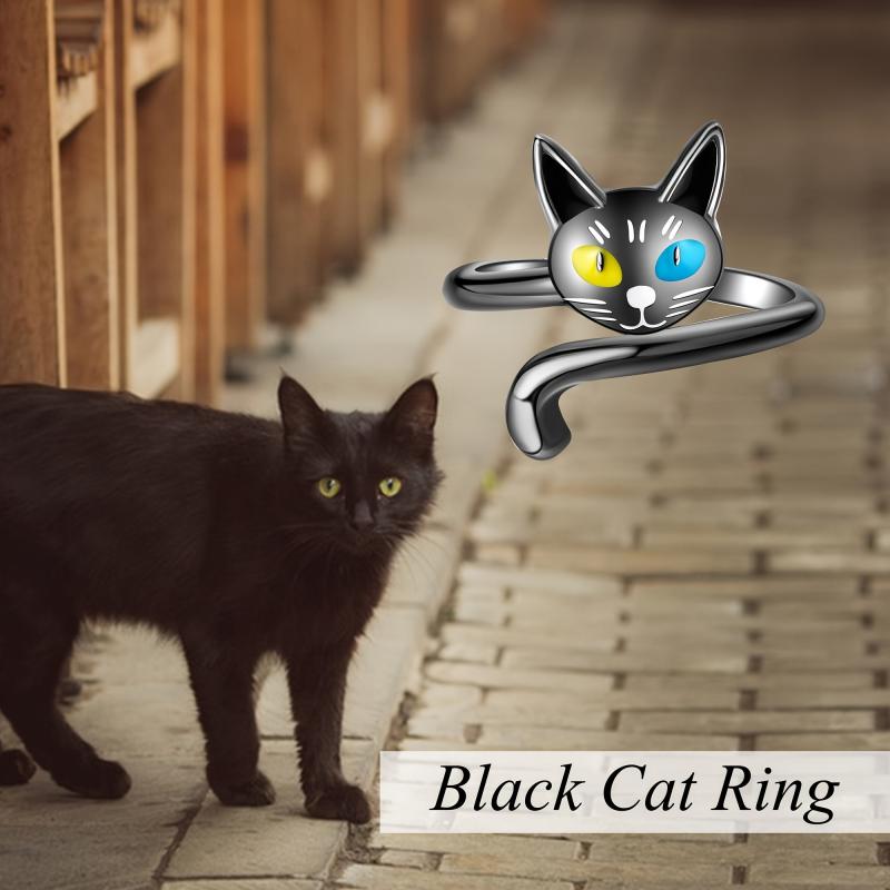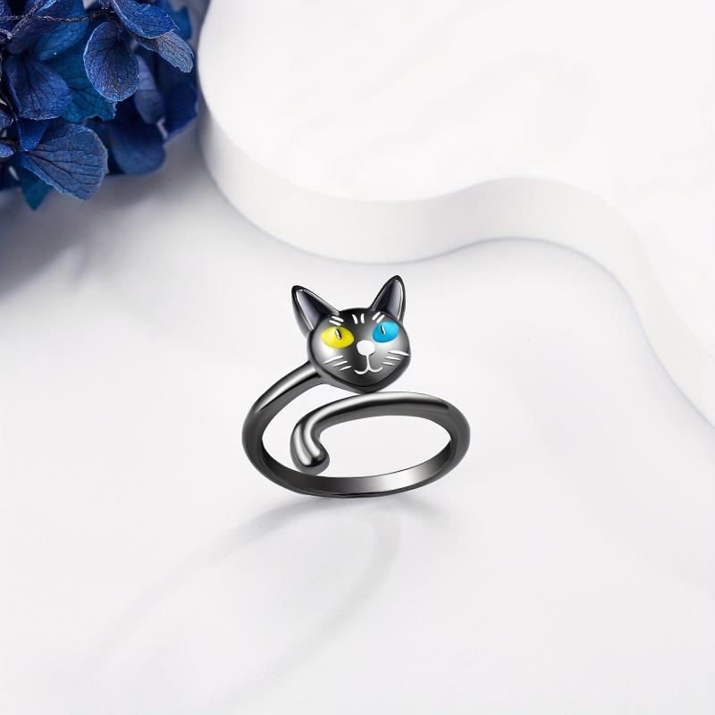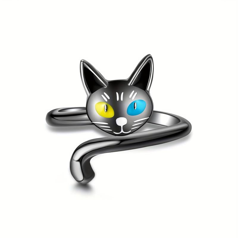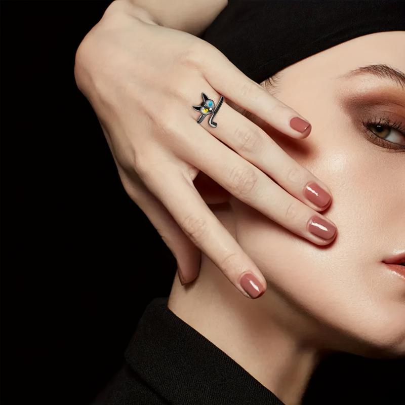 This elegant cat ring is made of sterling silver, perfect for cat lovers. It's a stylish and cute accessory for women.