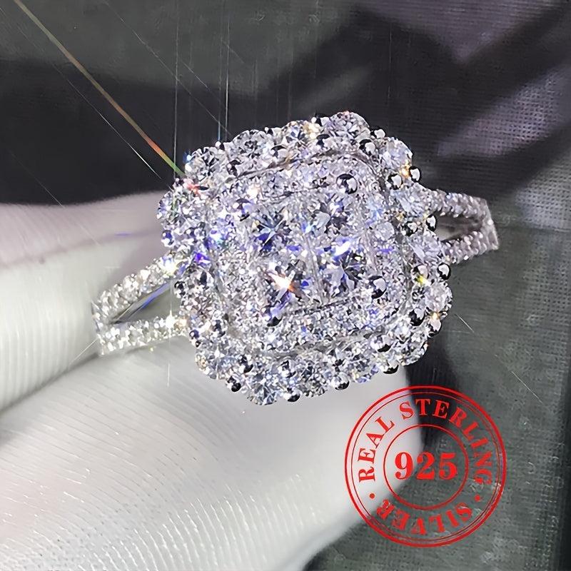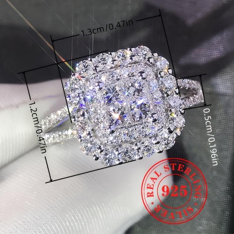 This stunning engagement ring features a square cubic zirconia stone set in shiny sterling silver. A perfect choice for proposing or as a wedding band.