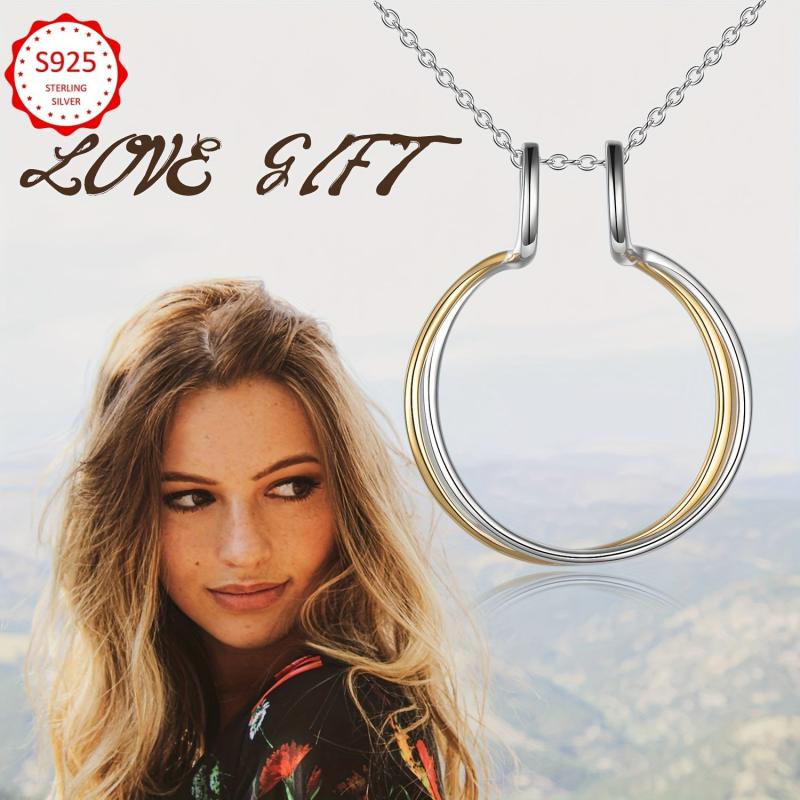 This elegant necklace features a sterling silver horse shoe pendant that doubles as a ring holder. Perfect gift for women to keep their engagement ring safe.