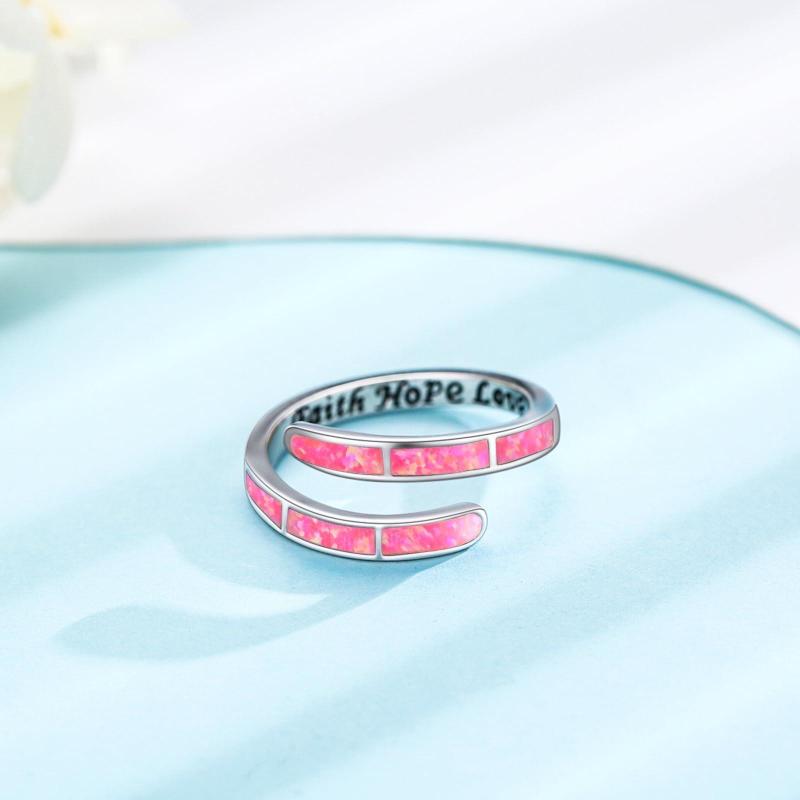 Sterling Silver Hot Pink Opal Ring Adjustable Rings for Women