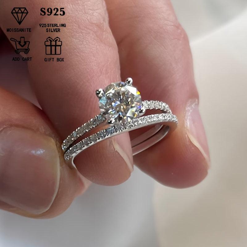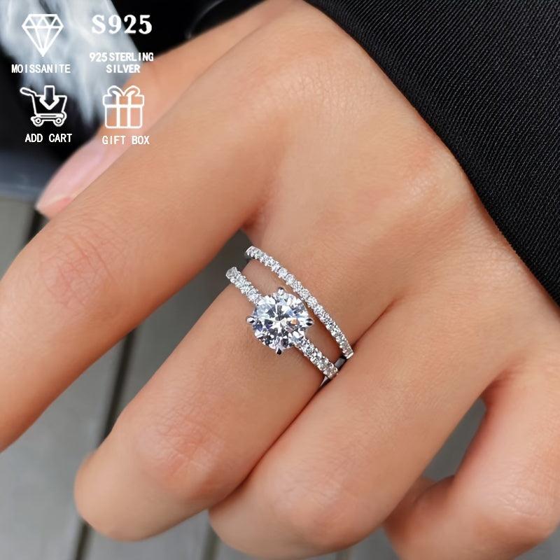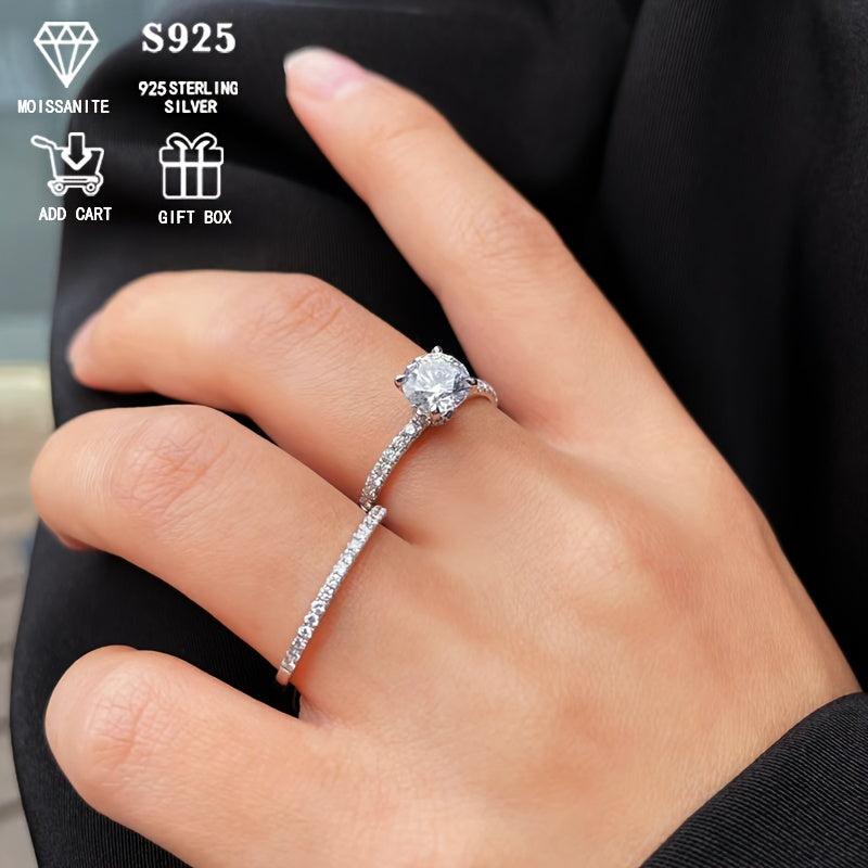 A stunning sterling silver engagement ring set with full faux diamond accents. This set is perfect for a glamorous and elegant look.