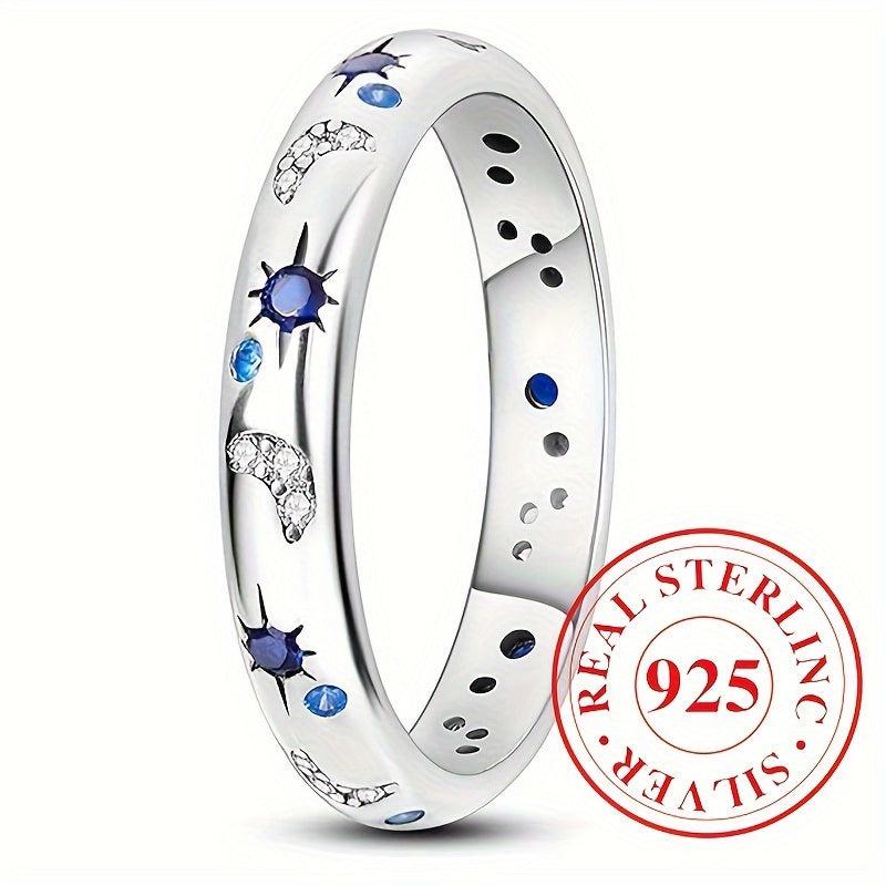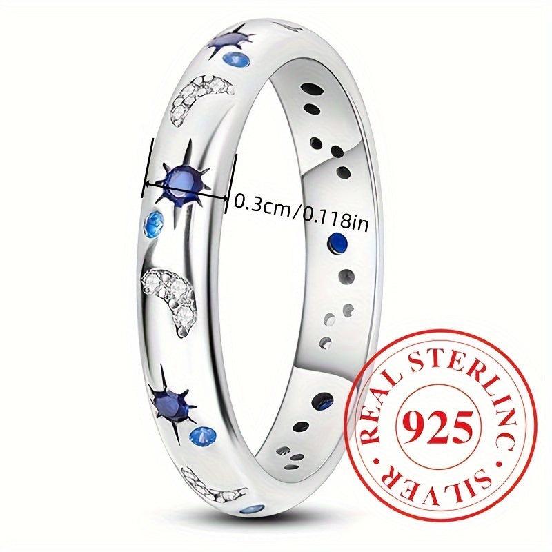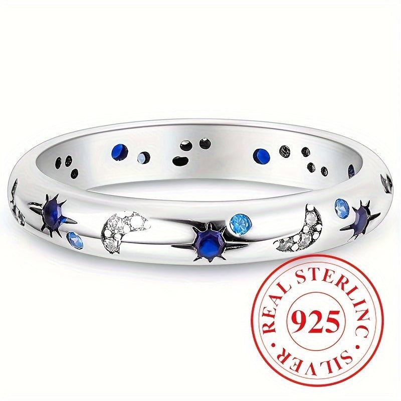 This Sterling Silver ring features an inlaid Moon and Sun design with Synthetic Zirconia. Perfect for parties or daily wear.