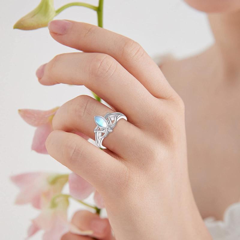 Elegant sterling silver ring featuring a beautiful moonstone set in a lotus flower design. Perfect for women's size 8.