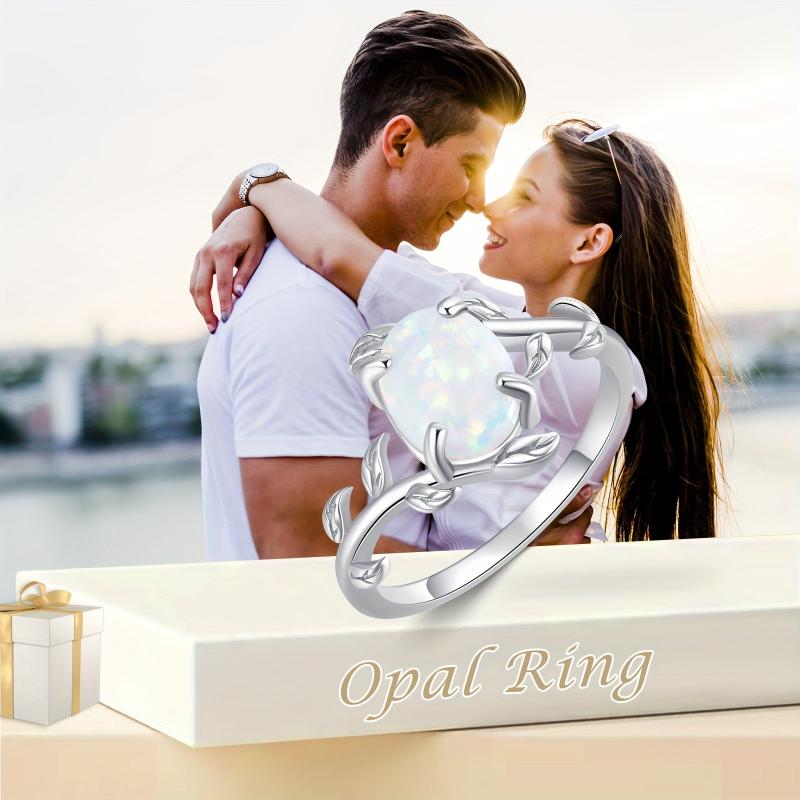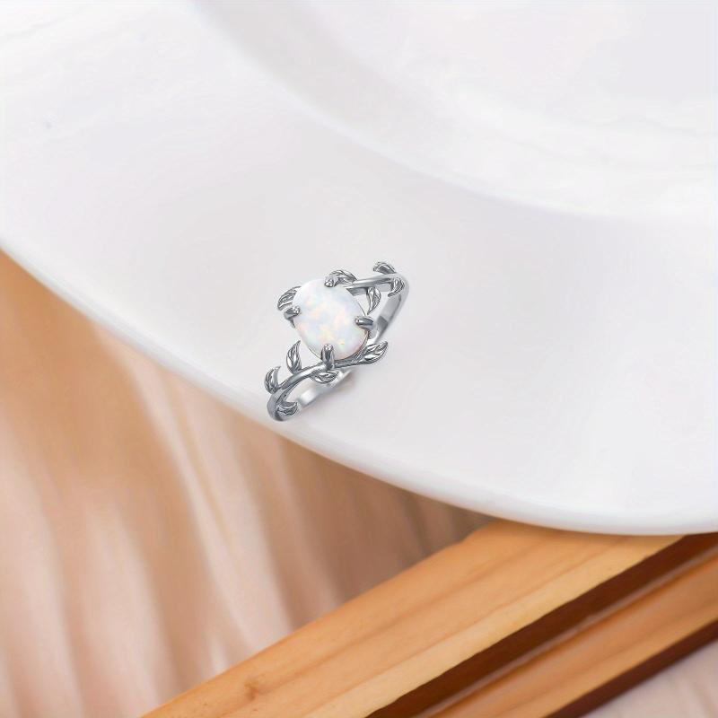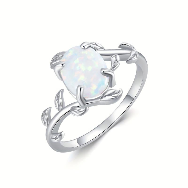 Elegant and stunning Opal ring crafted in sterling silver, featuring a unique leaf design. Perfect as a gift for women who appreciate fine jewelry.