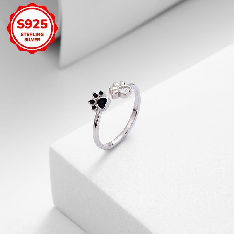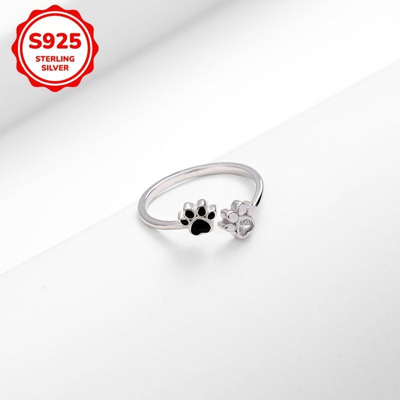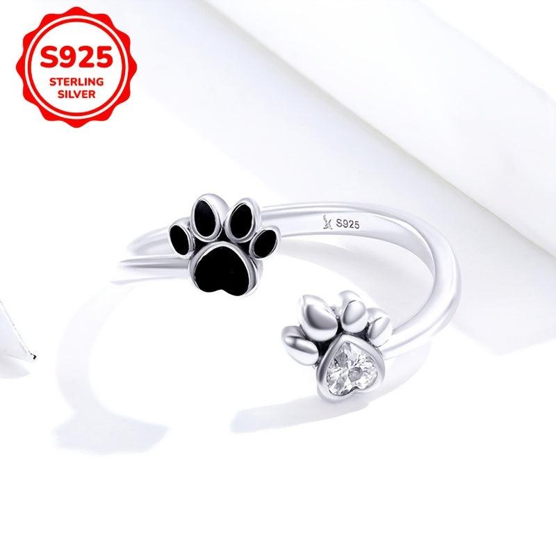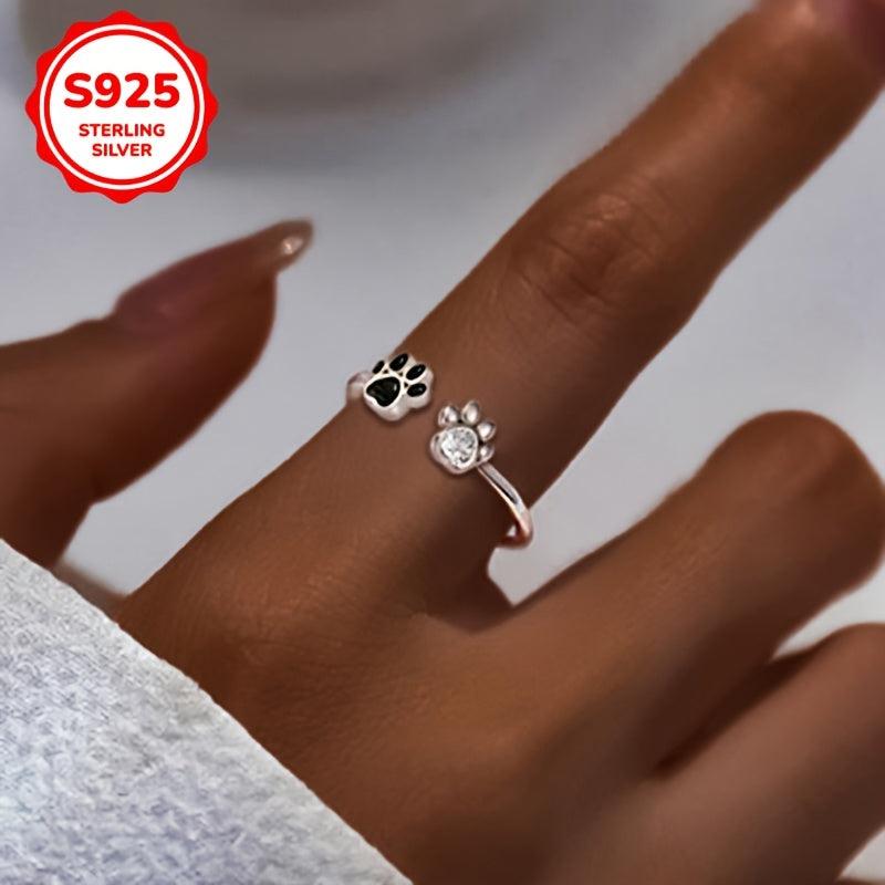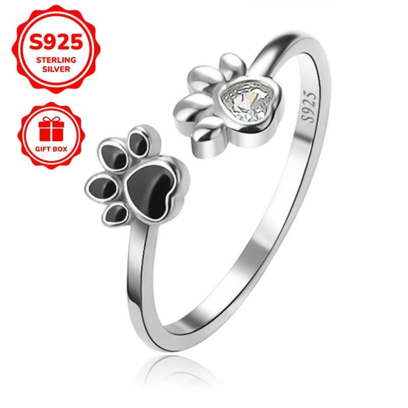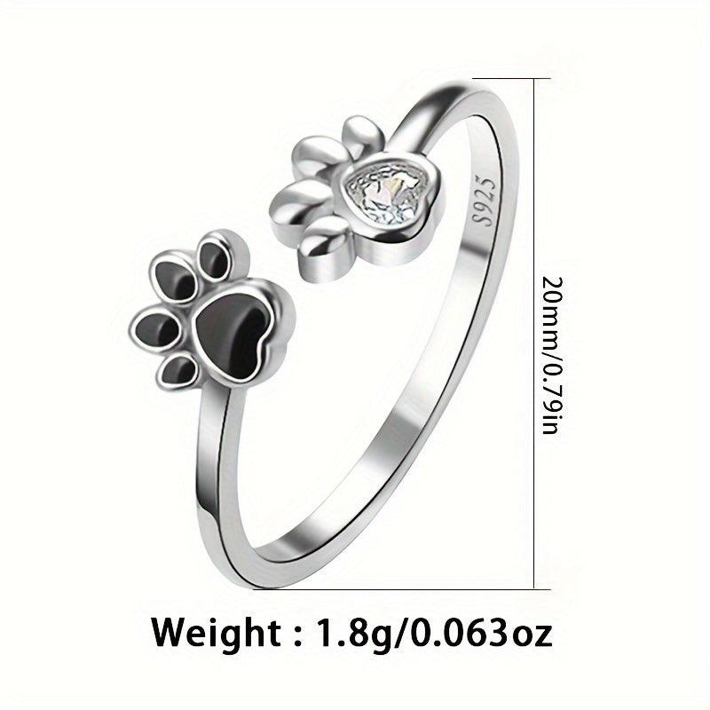 This 925 sterling silver ring features a cute dog paw design inlaid with synthetic zirconia drip glue. Hypoallergenic and perfect for everyday wear or as a gift.