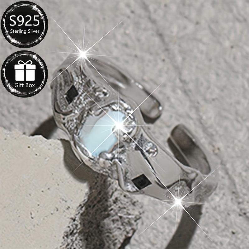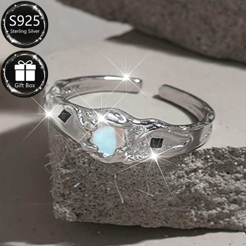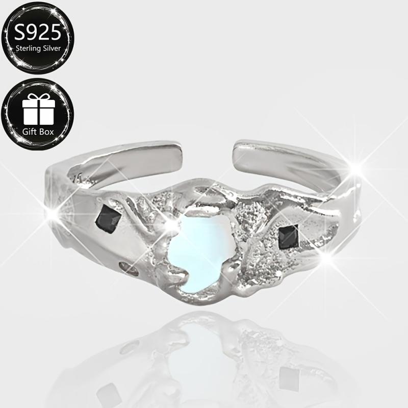 Elegant sterling silver ring featuring a zirconia moonstone texture. Perfect for adding a touch of celestial beauty to your jewelry collection.