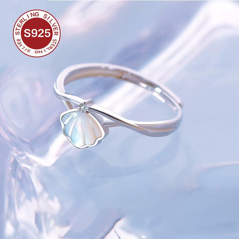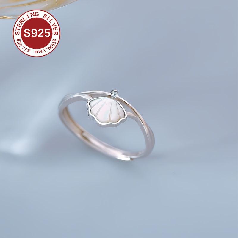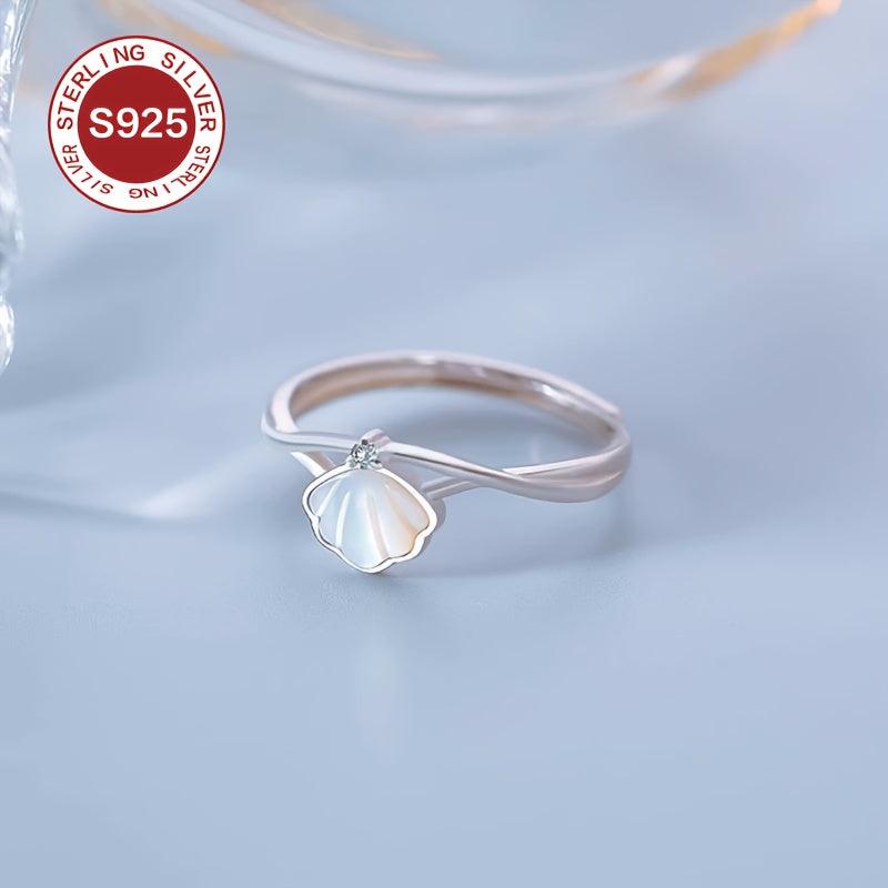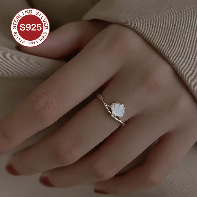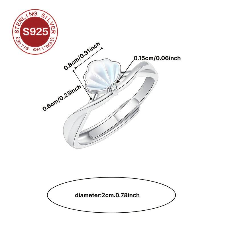 This stunning ring is made of S925 sterling silver with mother of pearl inlay and platinum plating. It is a versatile accessory perfect for daily wear and makes a great Valentine's gift.