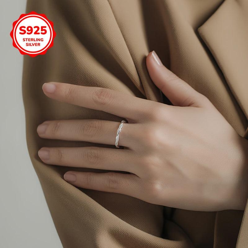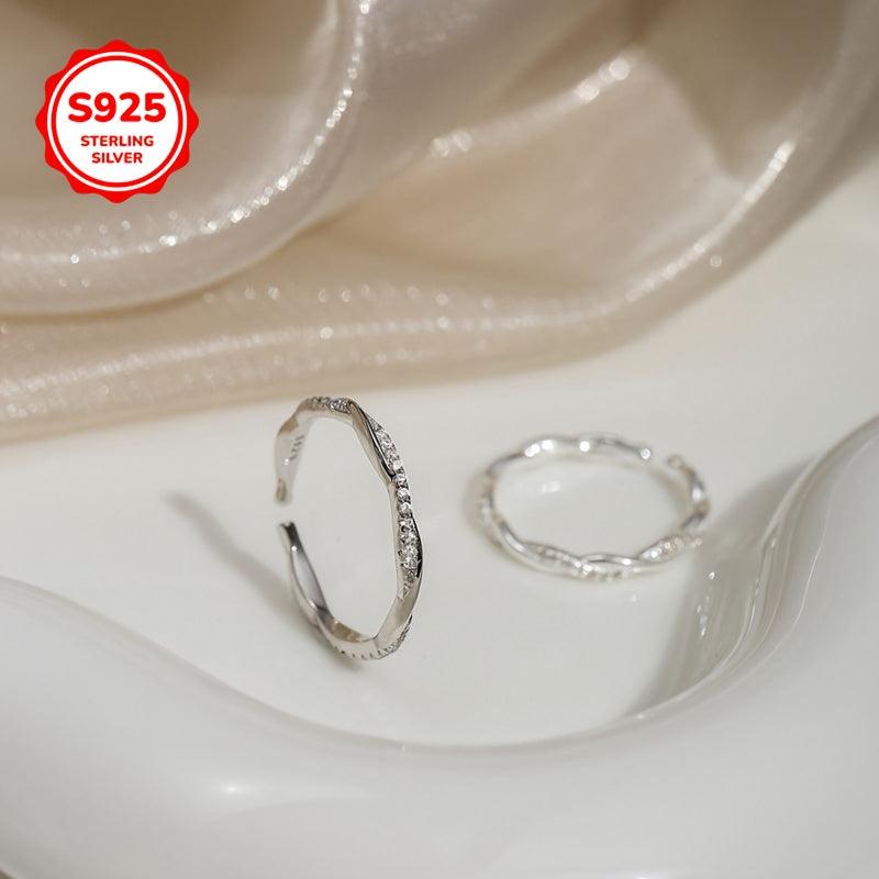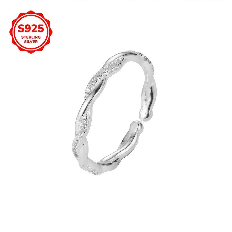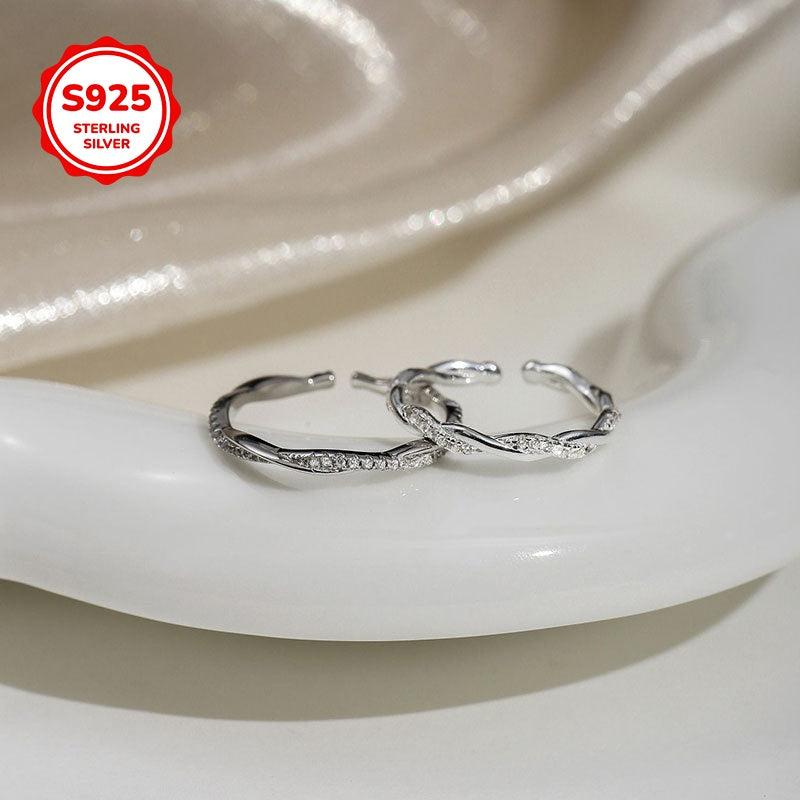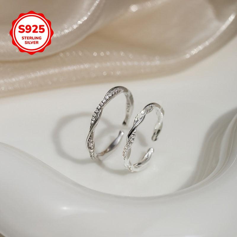 Elegant S925 sterling silver ring with sparkling cubic zirconia. This adjustable open band ring is perfect for couples to wear daily and on special occasions.