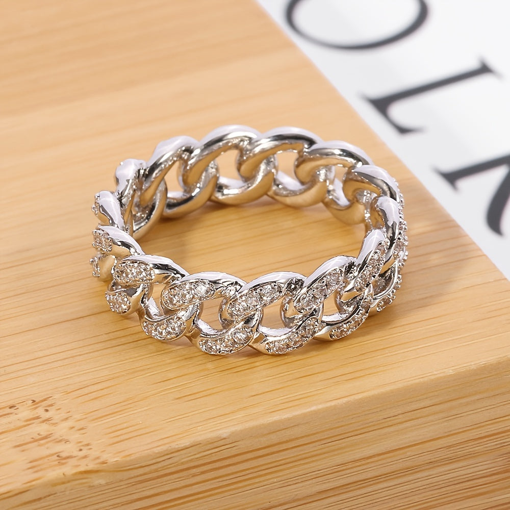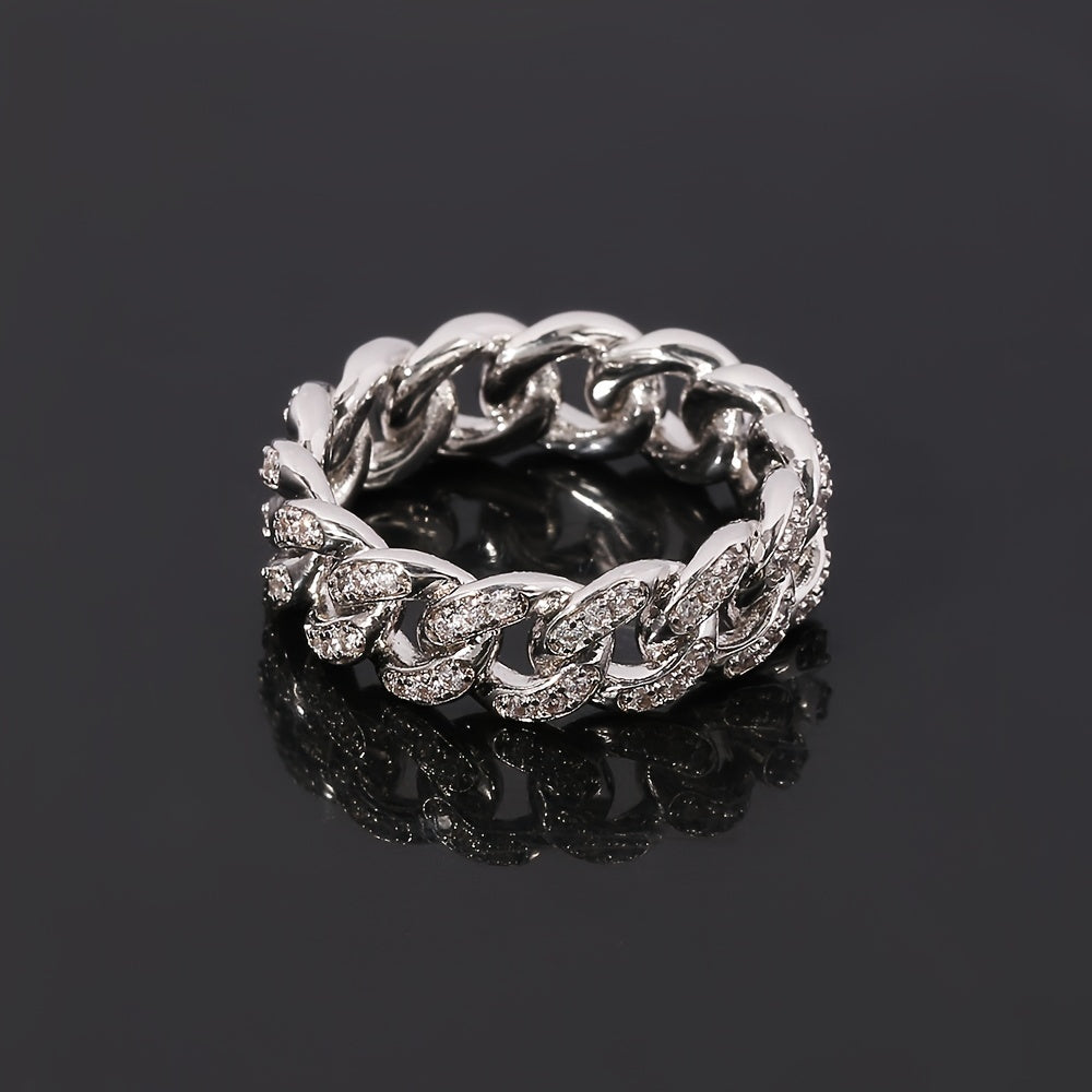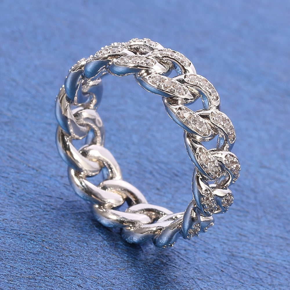 Add some bling to your look with this decorative ring featuring artificial diamonds. Perfect for streetwear and hip hop styles.
