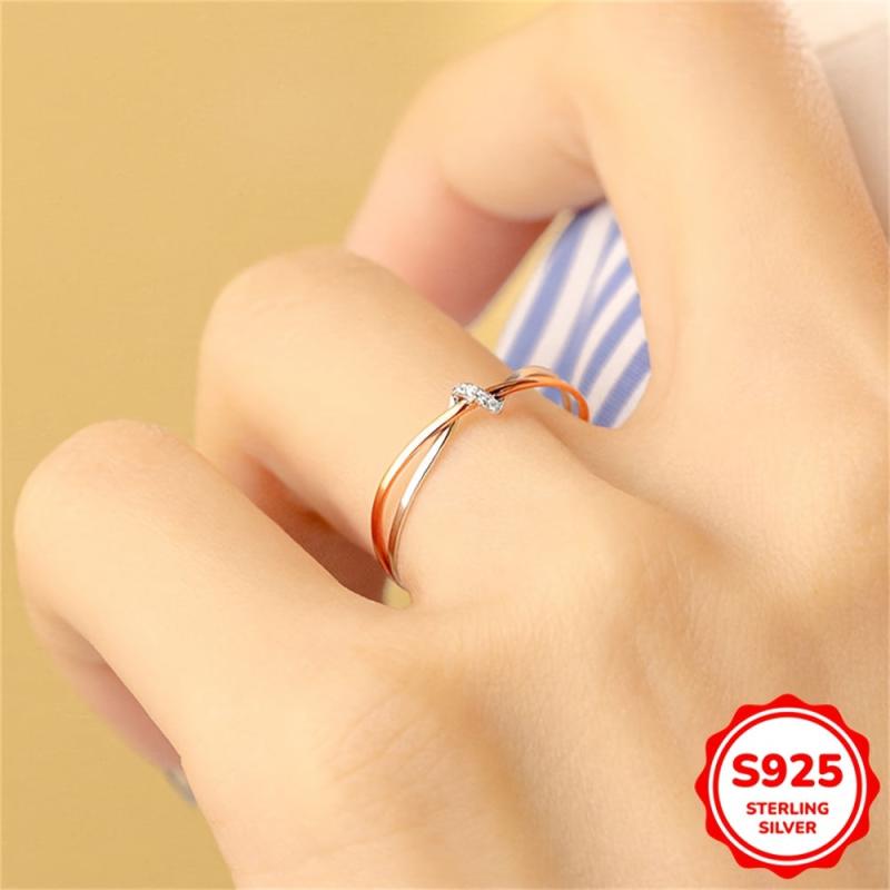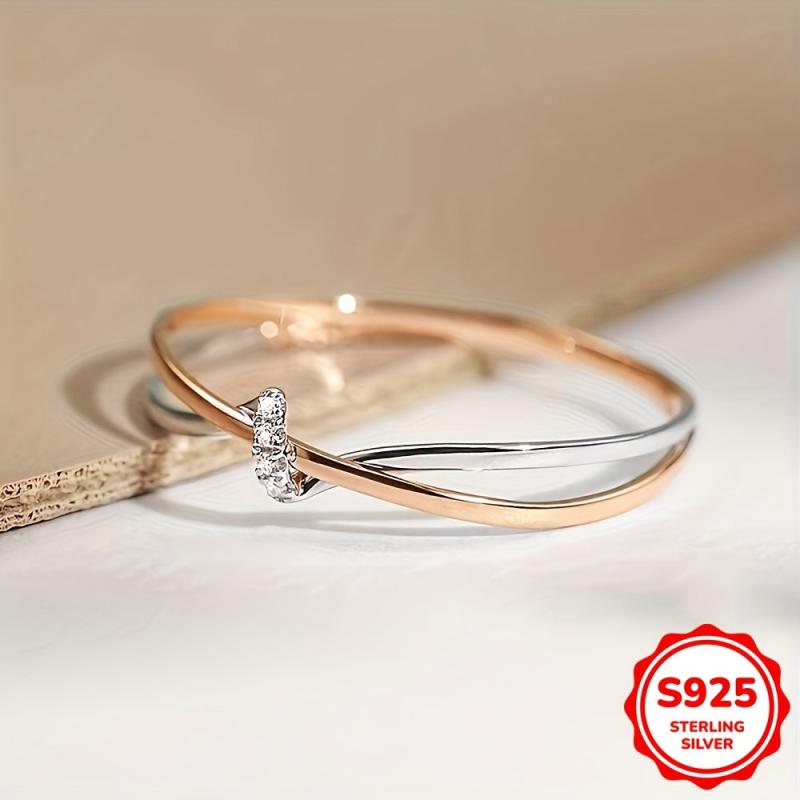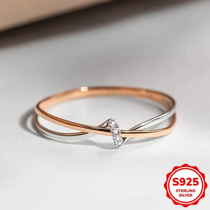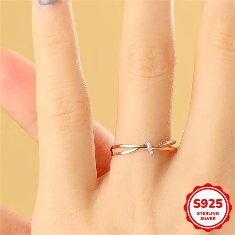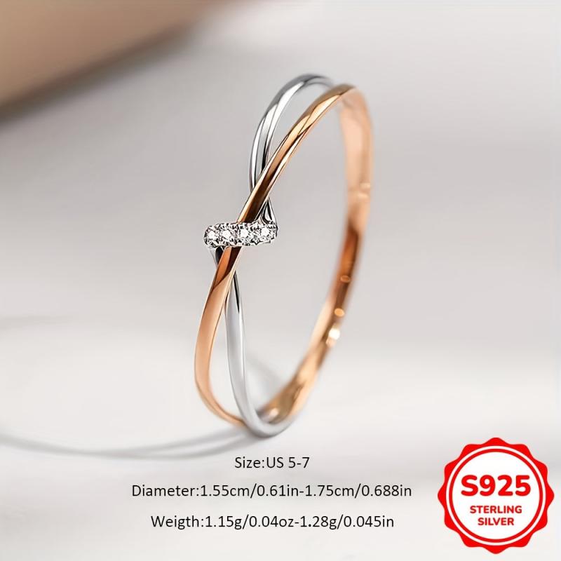 Elegant and fashionable S925 pure Silver ring with Zirconia inlaid intertwined knot buckle rose Gold ring perfect for your lover, mother's anniversary.