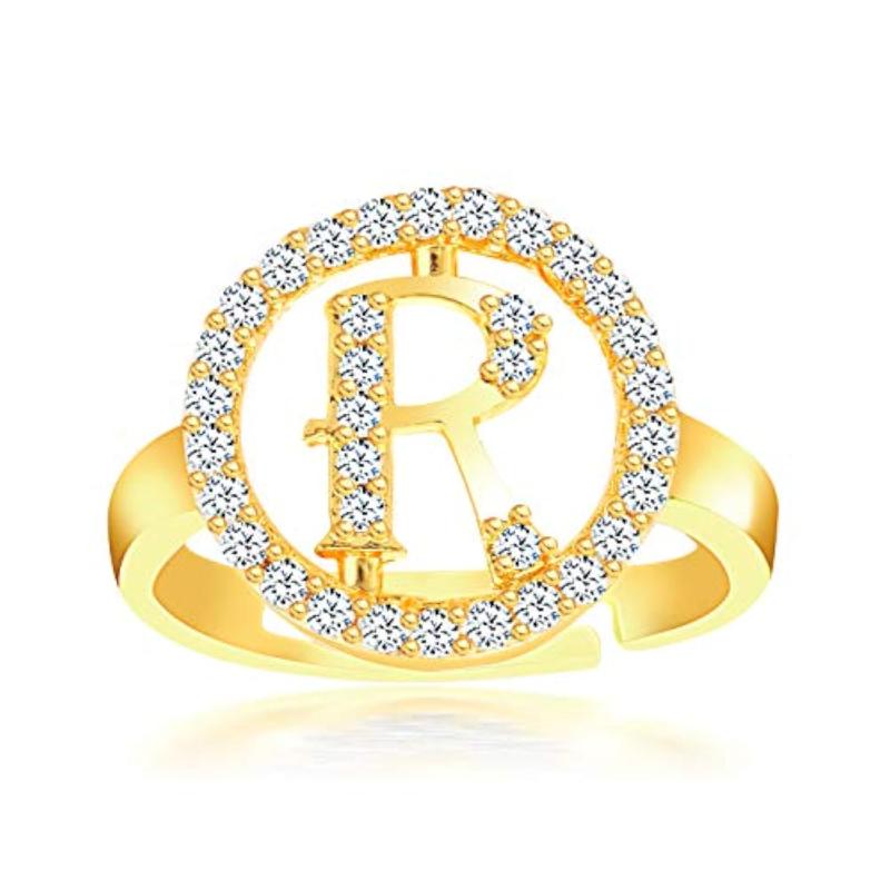 This stunning ring features a heart-shaped design with the initial 'R' in sparkling American diamonds. Perfect for Valentine's Day or as a gift for your loved one.