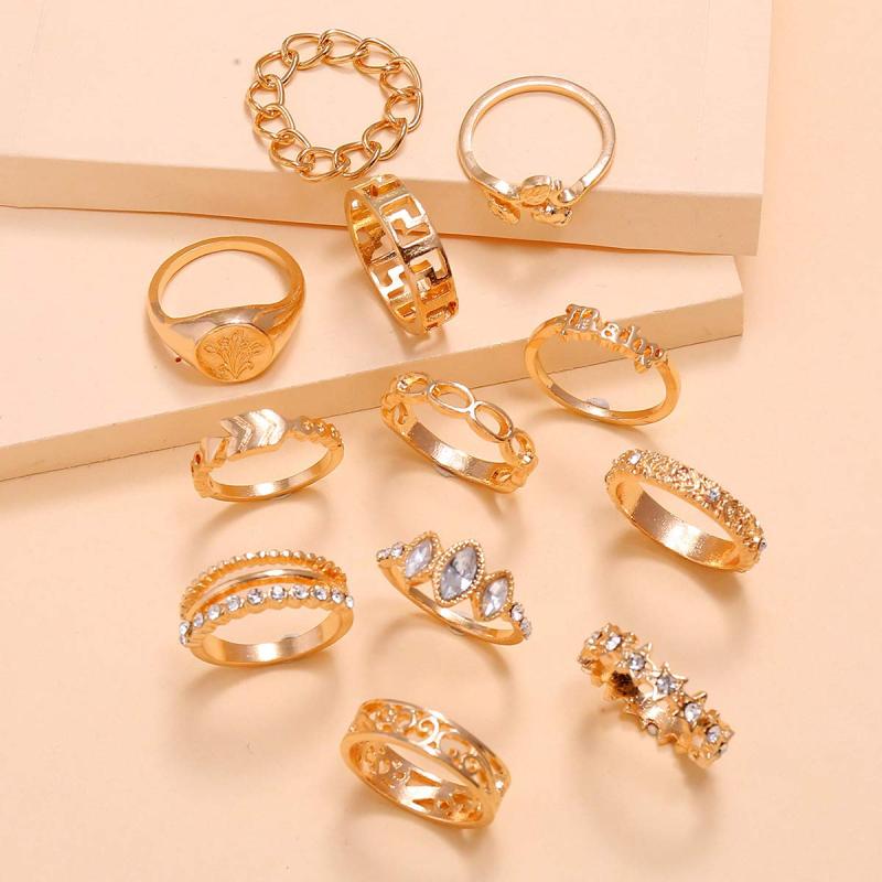 Elevate your style with this set of 12 metal boho midi finger rings, perfect for adding a touch of elegance and trendiness to your look.