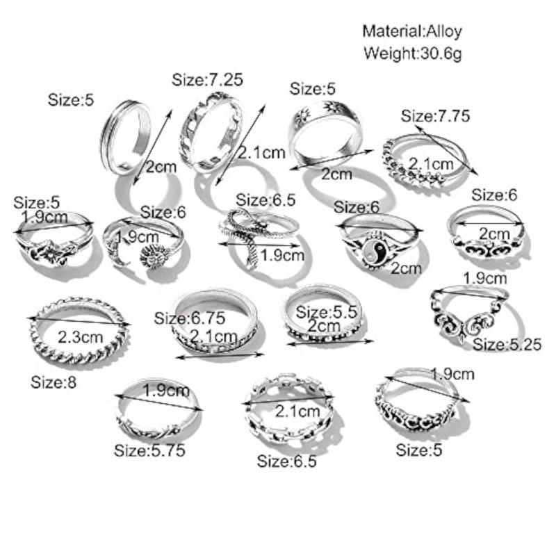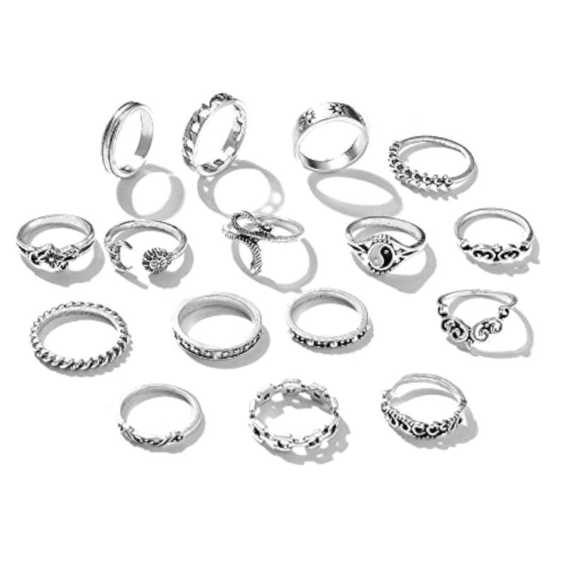 Elevate your boho chic style with these trendy metal midi finger rings. This set includes 16 unique rings to mix and match for versatile looks.
