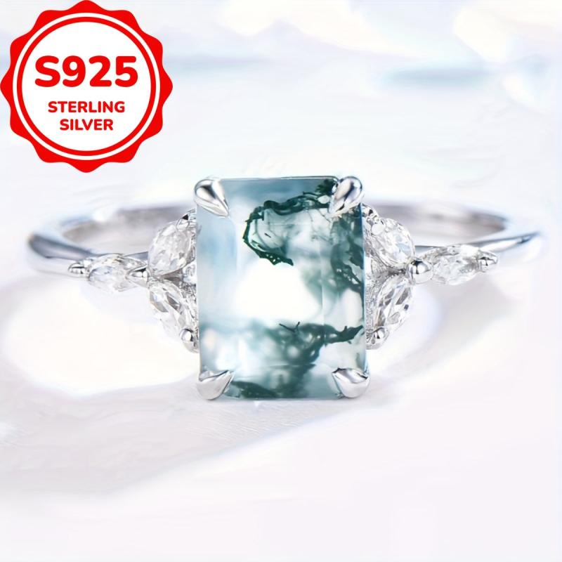 This unique ring is made of natural water agate and crafted with high-quality S925 sterling silver. Perfect for engagement or wedding band. Weighs 2.8g.