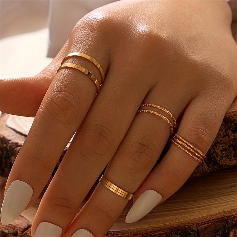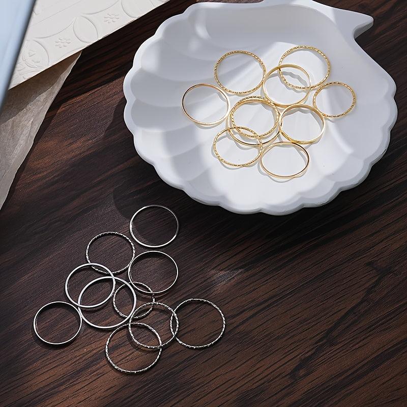 Elevate your style with this set of 10 rings in different sizes, perfect for any occasion. Stand out at parties, gatherings, and holiday events with these trendy accessories.