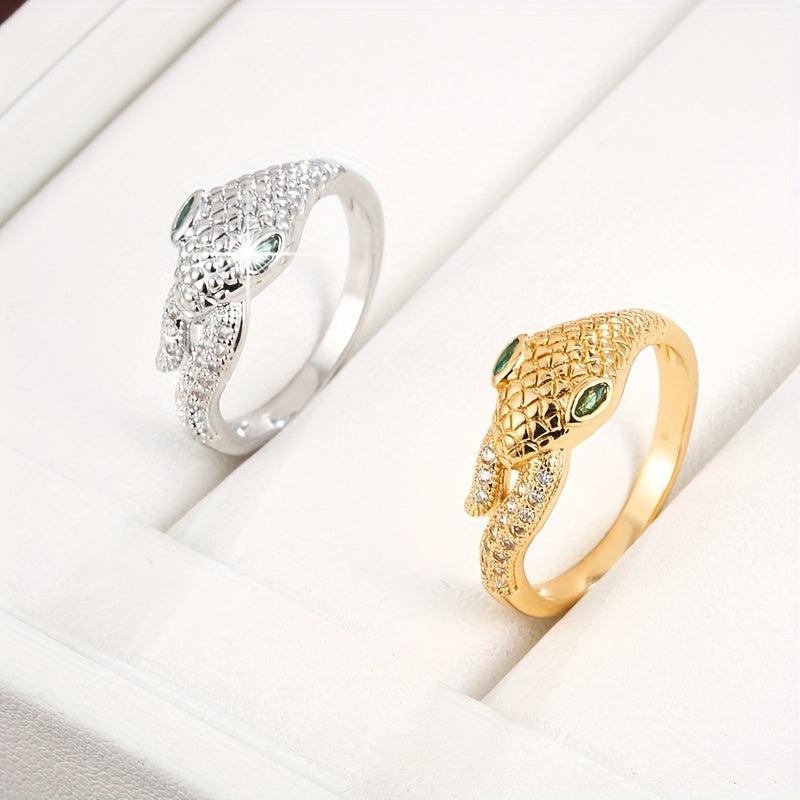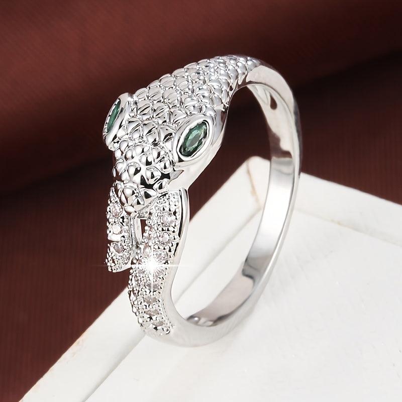 Elevate your style with this fashionable snake tail ring featuring synthetic zirconia. Perfect for women who love unique jewelry pieces.