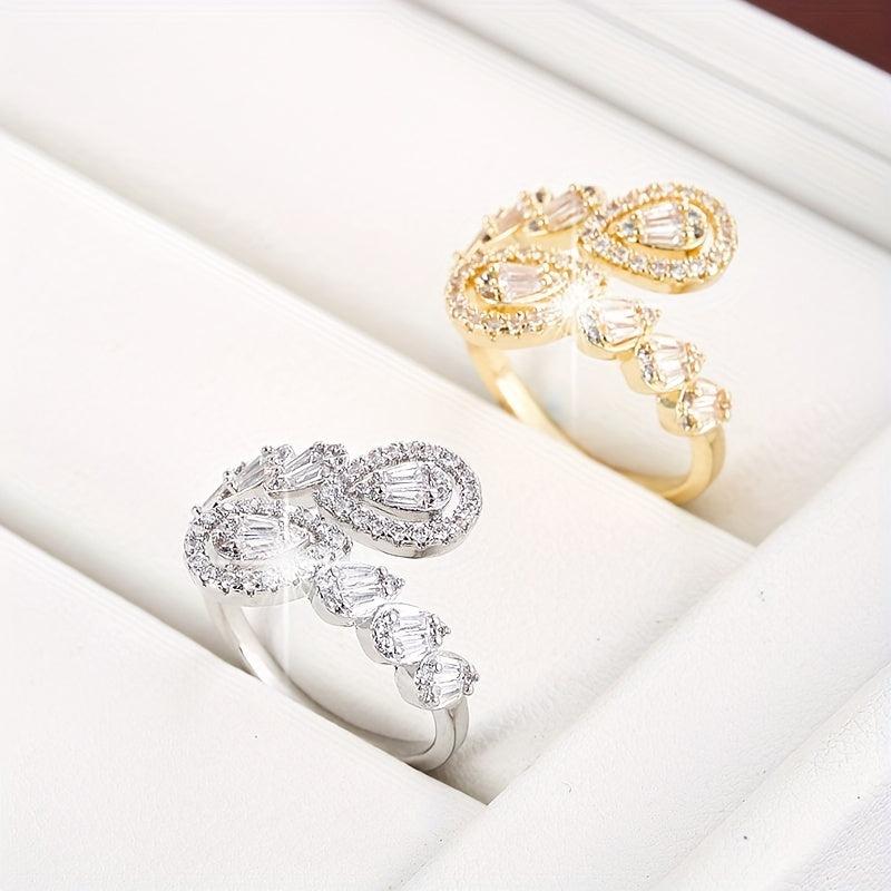 This fashionable ring features a teardrop shaped design in copper with synthetic zirconia inlay. The ring is adjustable for a comfortable fit.