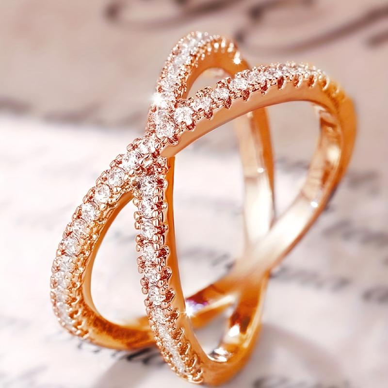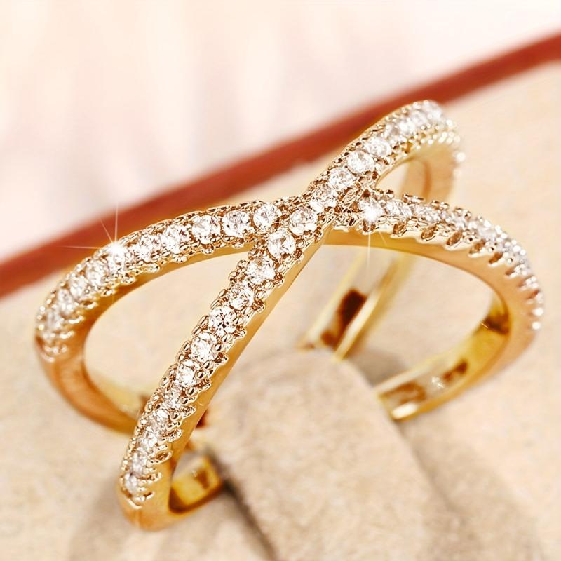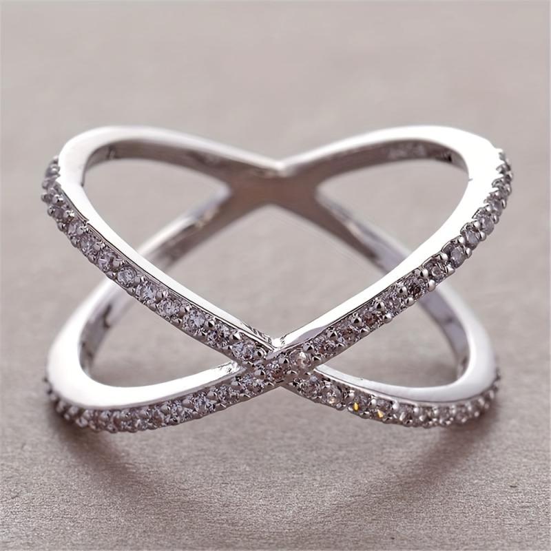 A uniquely designed ring for women with an X-shaped setting adorned with synthetic zirconia. Perfect for weddings, daily wear, and parties.