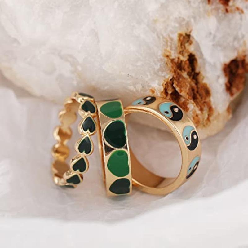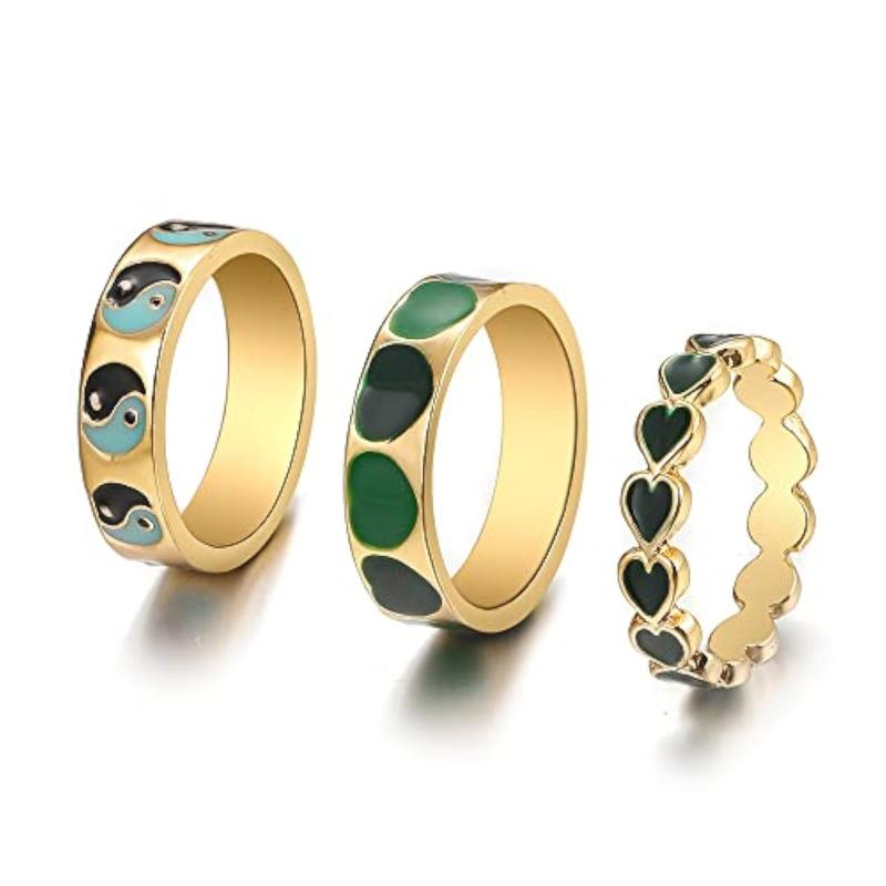 Elevate your style with this set of 3 Y2k metal chunky finger rings. These rings are trendy and perfect for adding a touch of flair to your outfit.