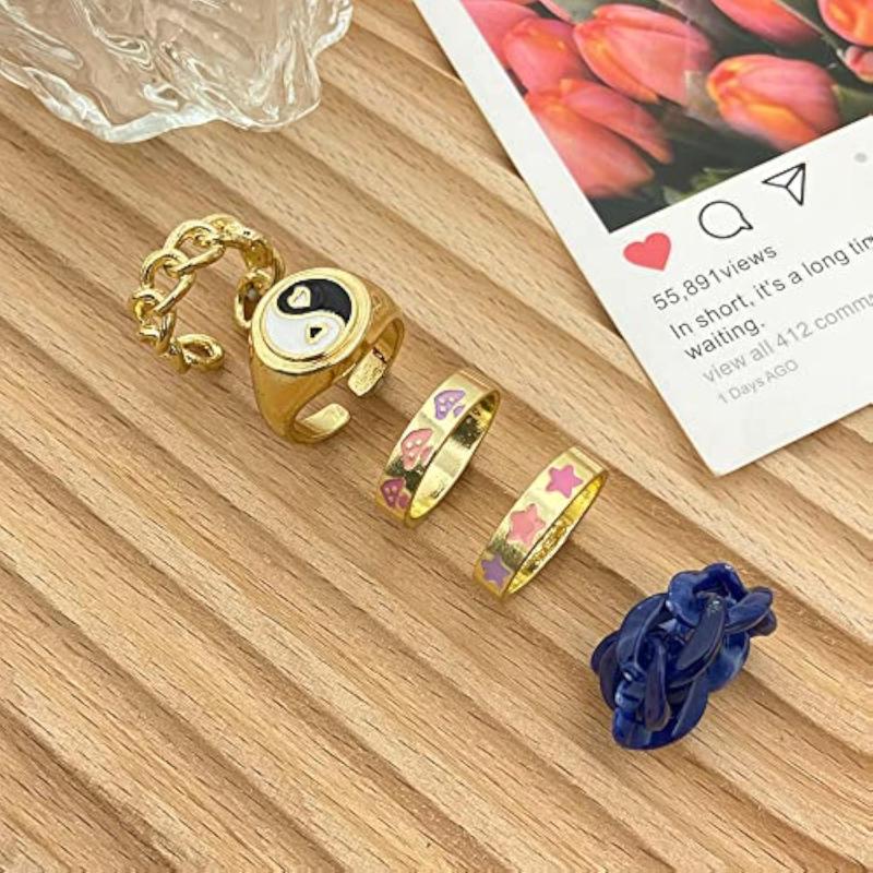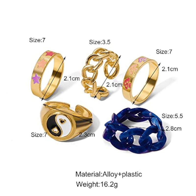 Get the latest stylish Y2k metal midi finger ring set that includes 5 unique rings to accessorize your look with a trendy touch.