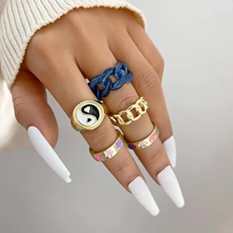 Elevate your style with this set of 5 metallic midi finger rings. Perfect for adding a trendy touch to your outfit.