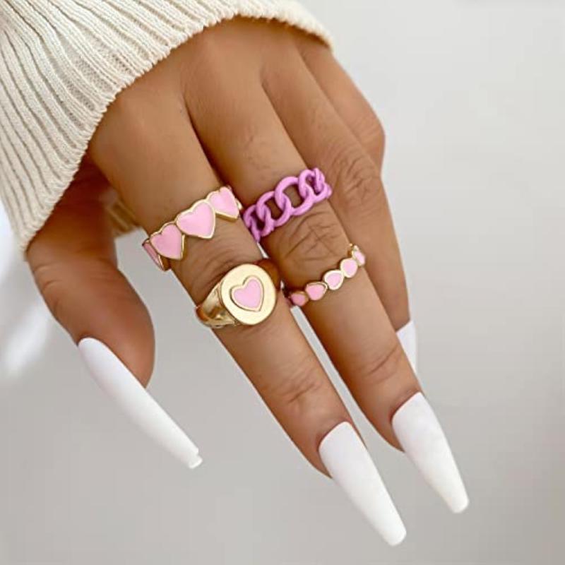 Add a touch of retro style with these Y2k metal midi finger rings. This set includes 4 fashionable rings suitable for any occasion.
