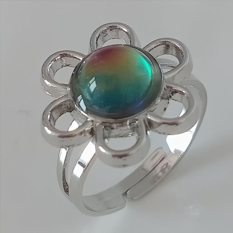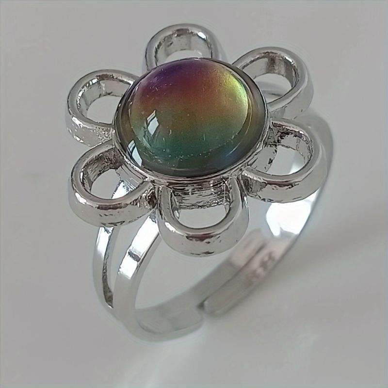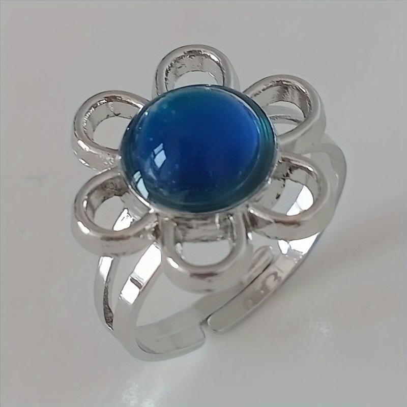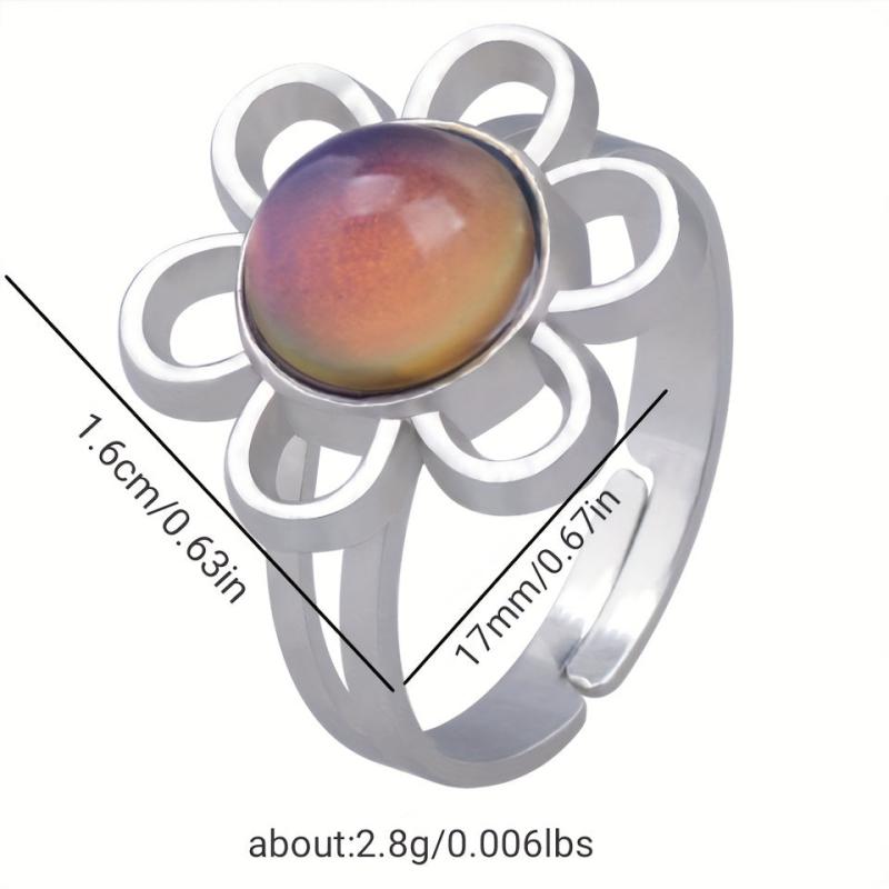 Vintage style sunflower mood ring with a temperature-sensitive gemstone that changes colors. Features an alloy band for a unique and stylish look.