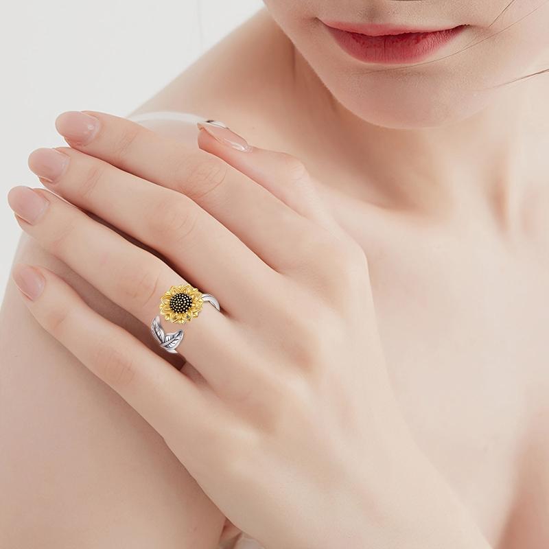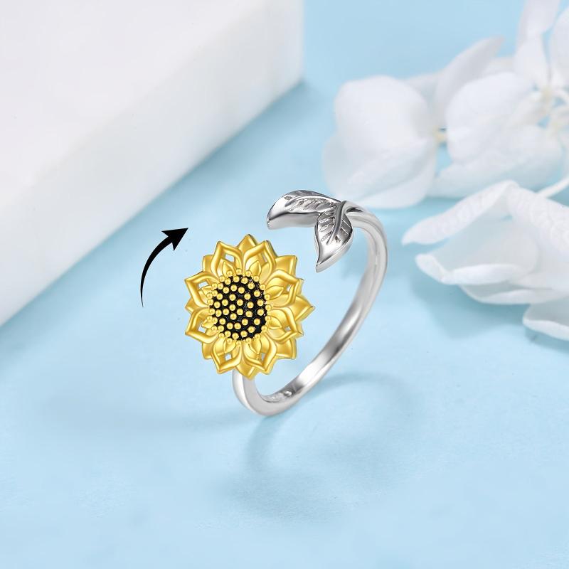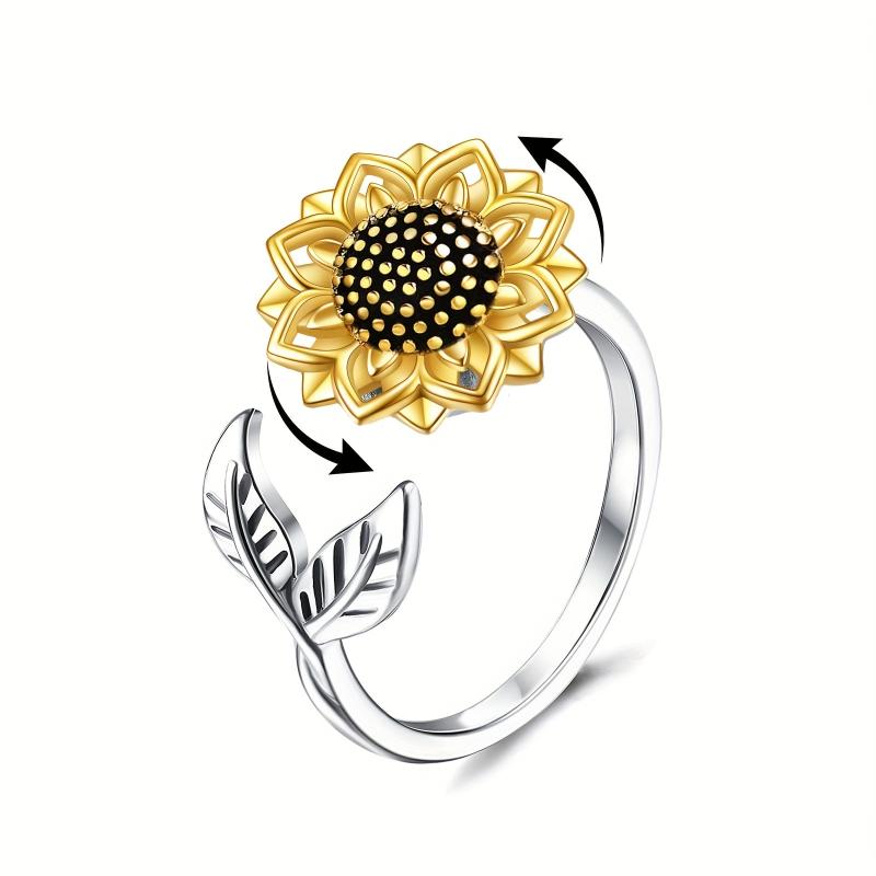 Elegant sunflower spinner ring crafted from 925 sterling silver. Perfect for women who love unique and stylish jewelry pieces.