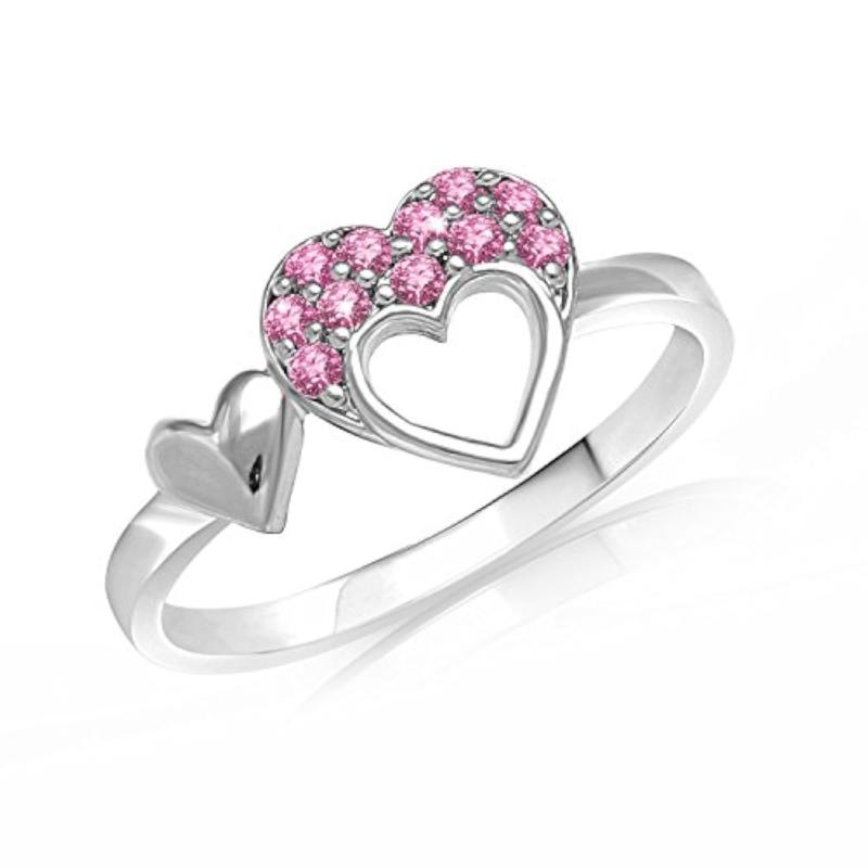 Express your love with this stunning Swarovski Crystal Pink Heart Double Rhodium Plated Ring. Perfect for Valentine's Day or any special occasion.