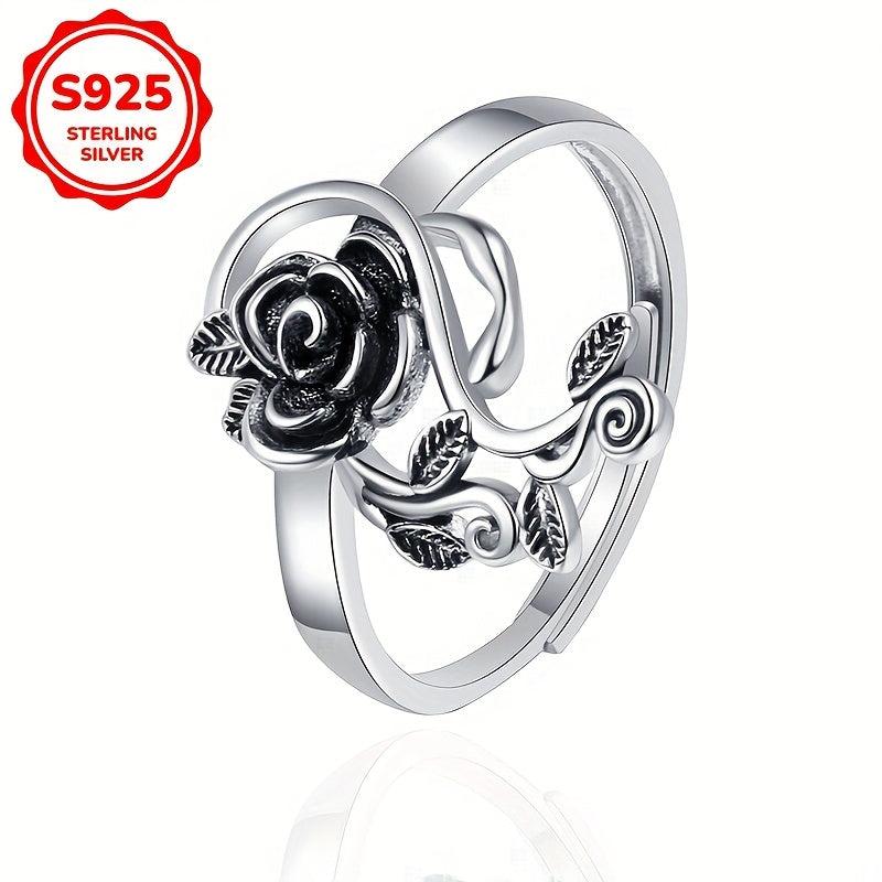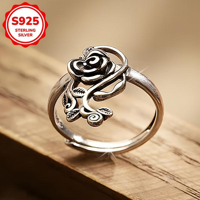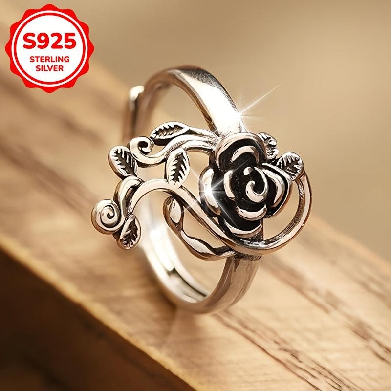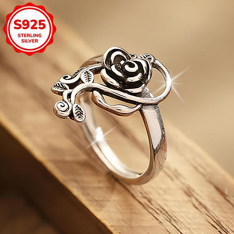 This lovely ring features a retro rose leaf design, perfect for daily wear. Made of 925 silver, it's a great Mother's Day gift.