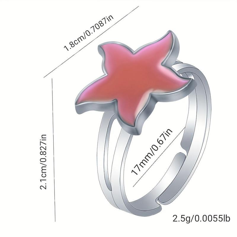 Stay stylish with this adorable starfish design ring that brings warmth to your heart. Features an adjustable opening for a comfortable fit.