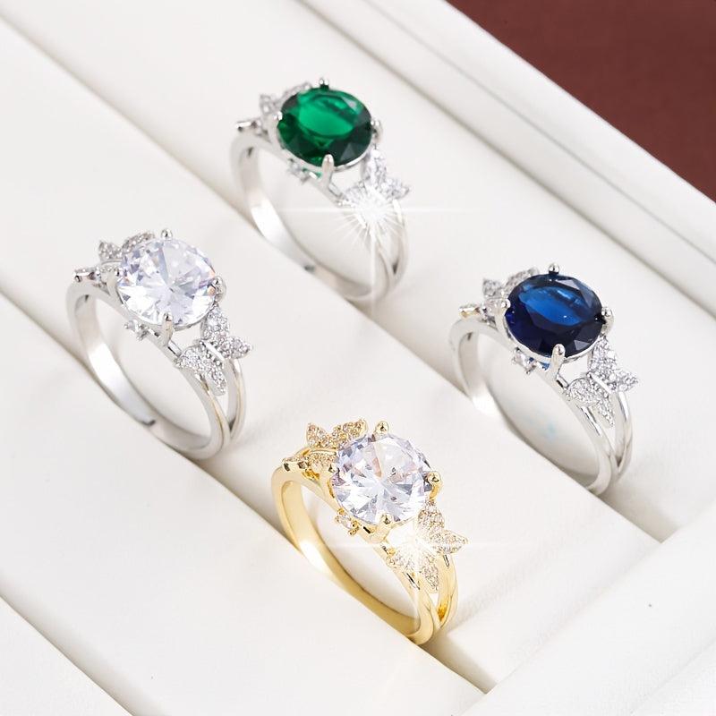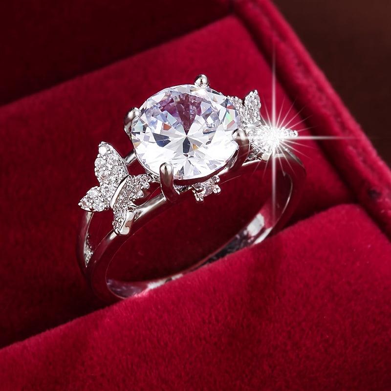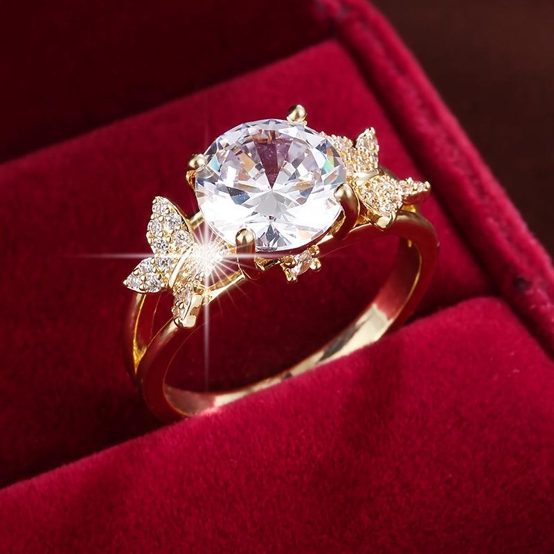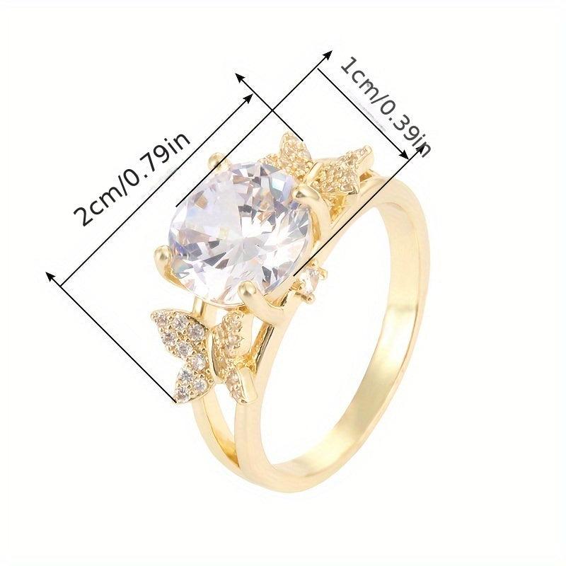 Sweet Woman Copper Ring with Butterfly Inlaid Zirconia