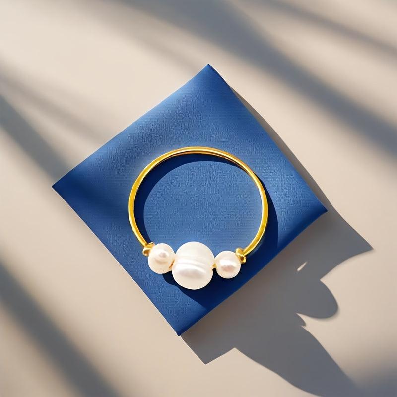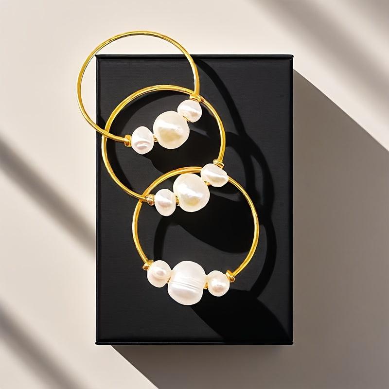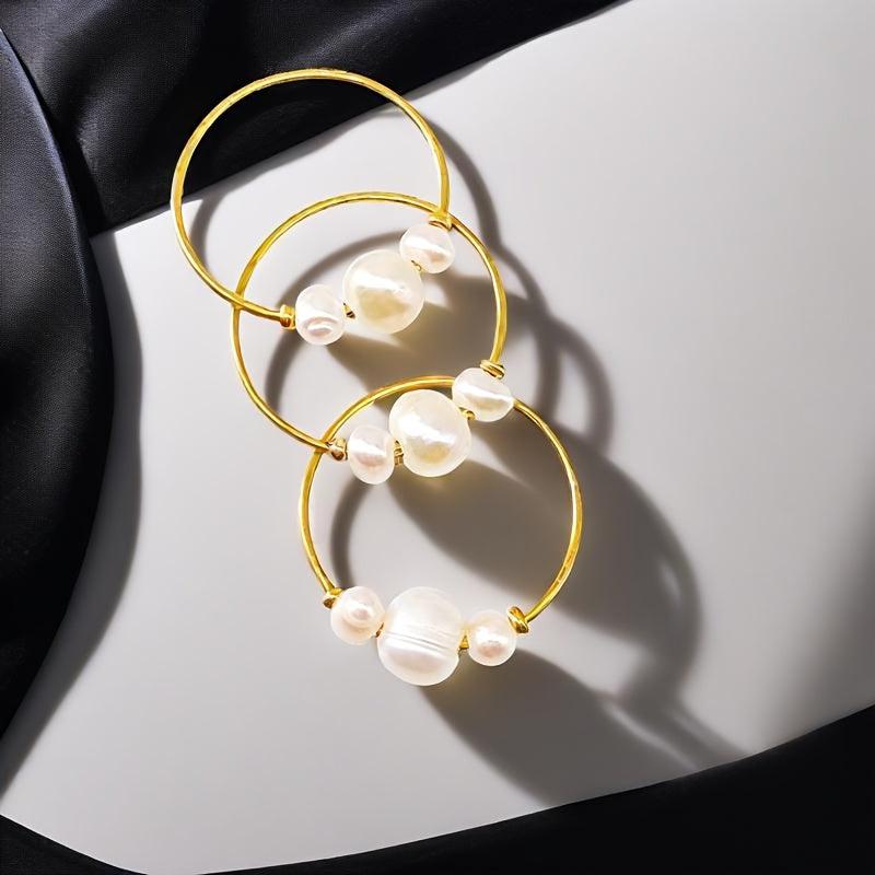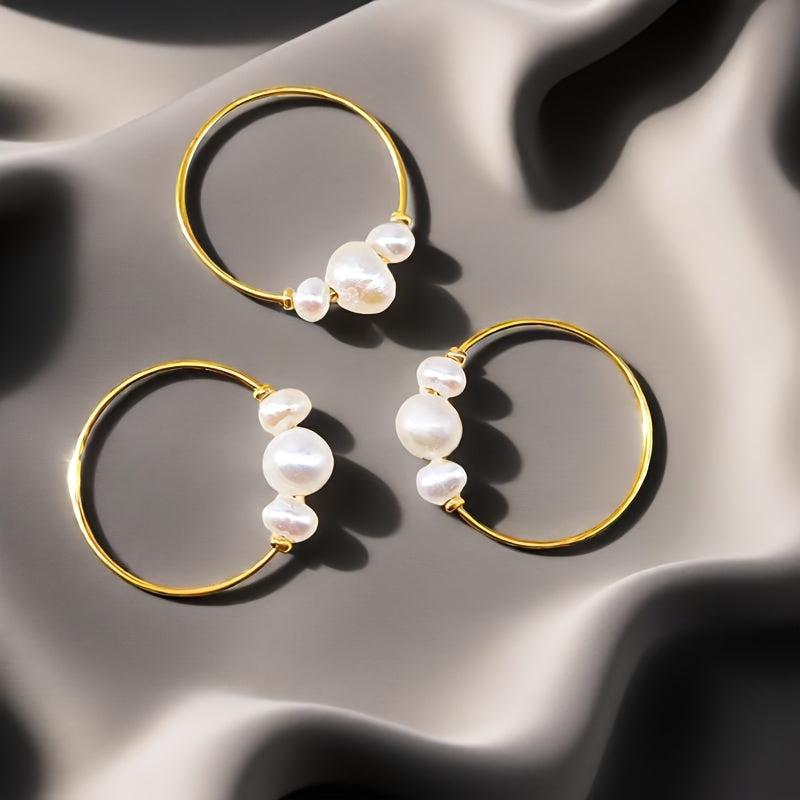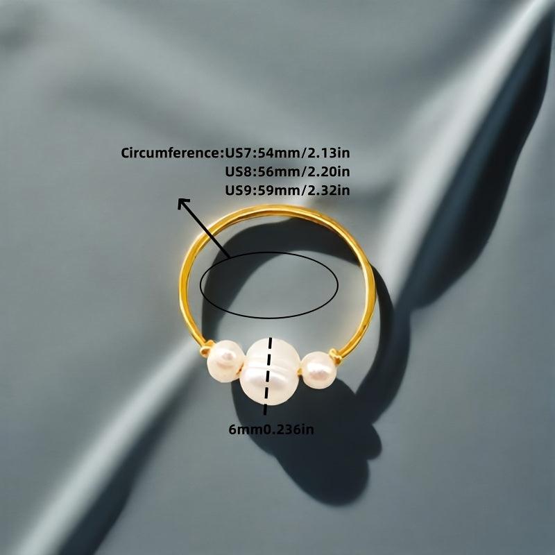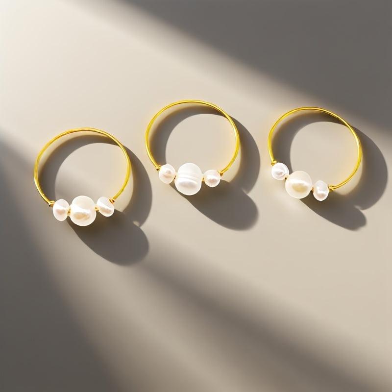This ring set features a sweet design with 3 freshwater pearls and stainless steel geometric rings, perfect for everyday fashionable wear.