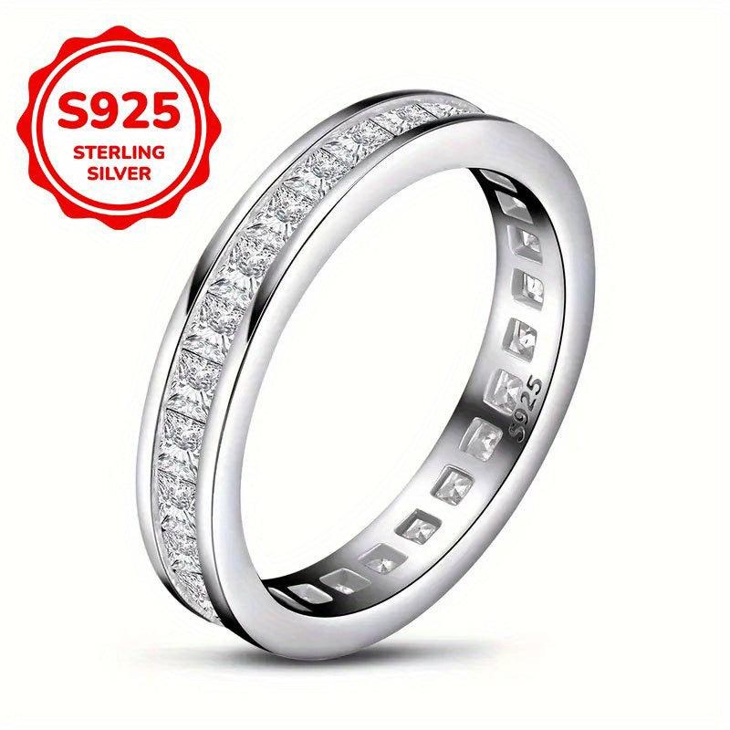 Synthetic Zirconia Eternity Rings 925 Sterling Silver Wedding Band