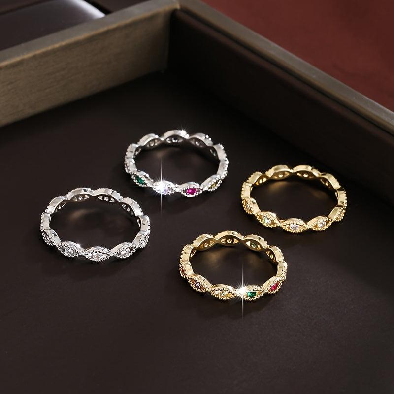 Elegant and eye-catching ring featuring a dazzling synthetic zirconia stone in a beautiful line 8 shape.