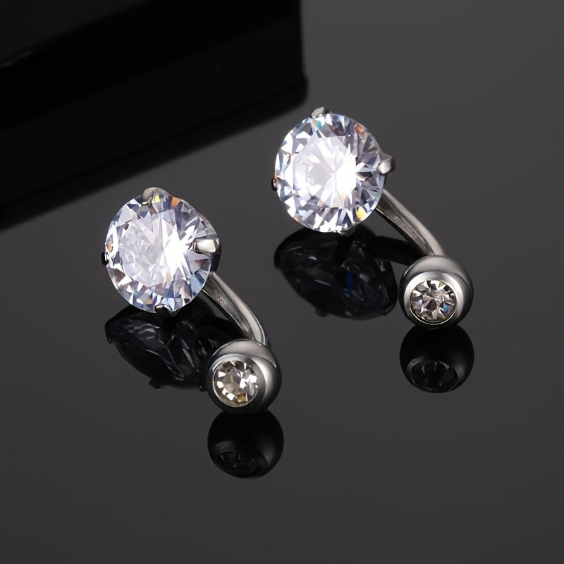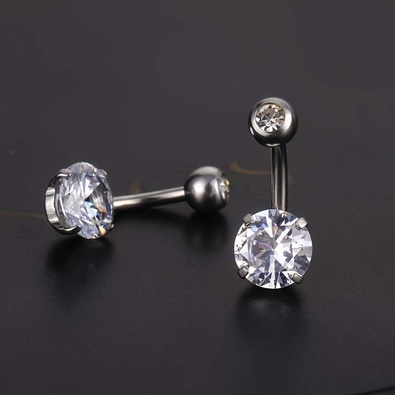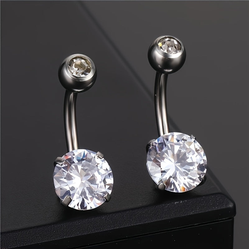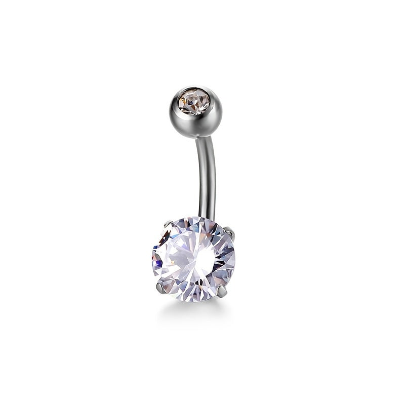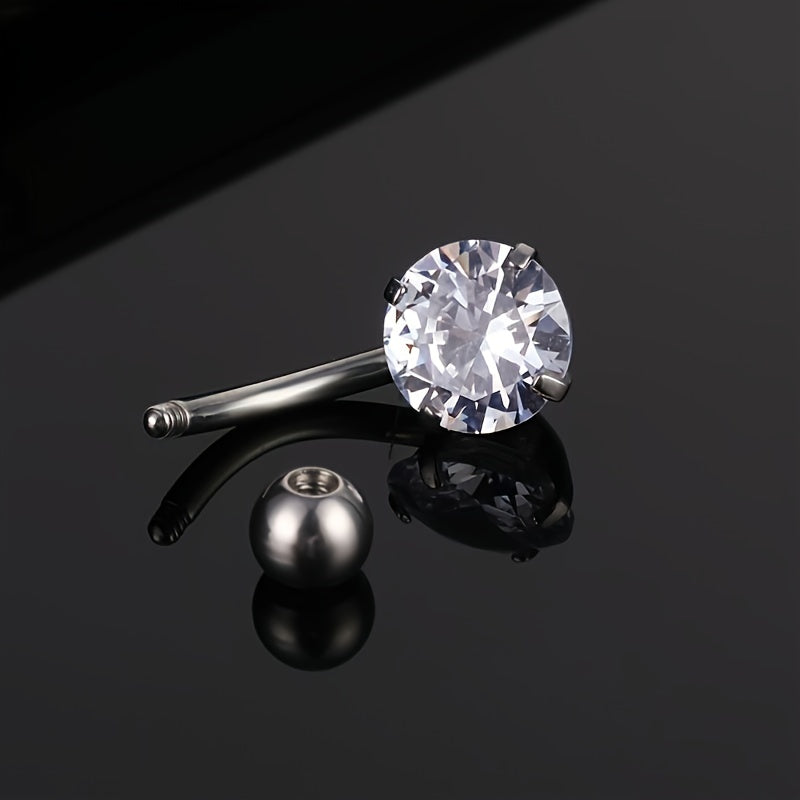This belly button ring features a round cubic zirconia in a titanium steel setting, perfect for body piercing enthusiasts.