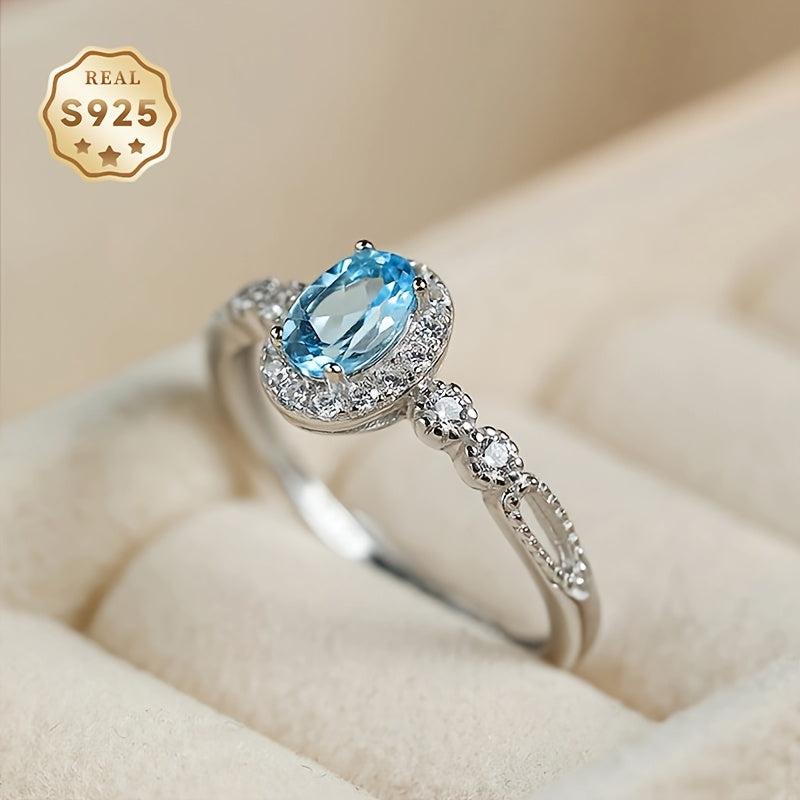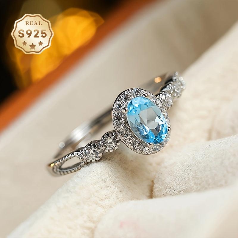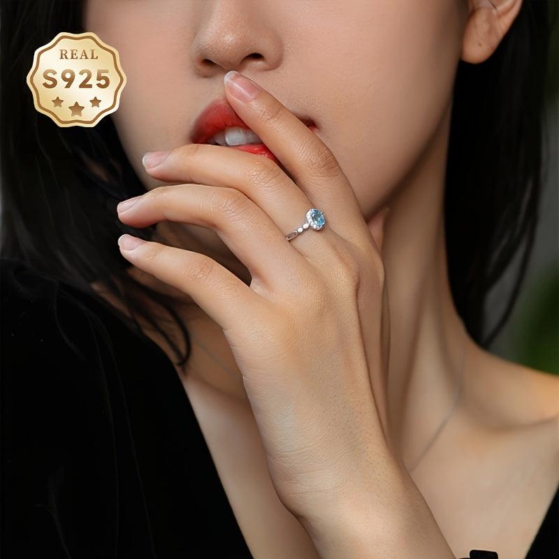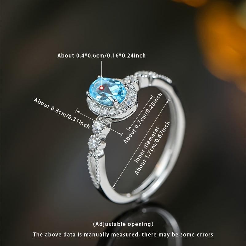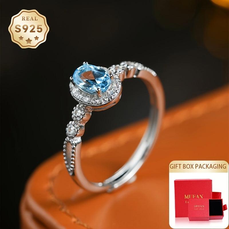 Topaz Ring Women's Open Ring S925 About 4 5mm Topaz Ring Adjustable