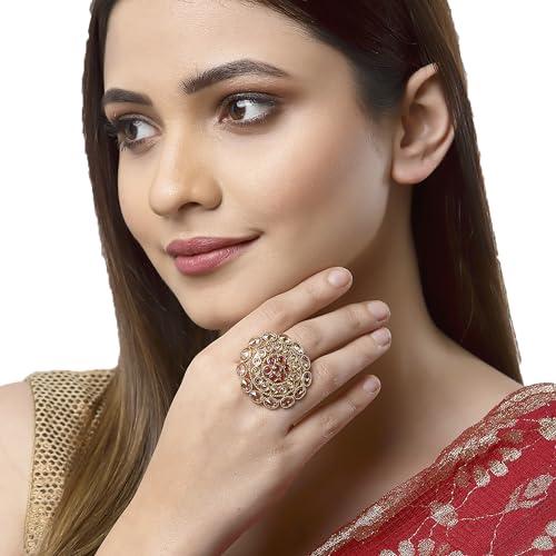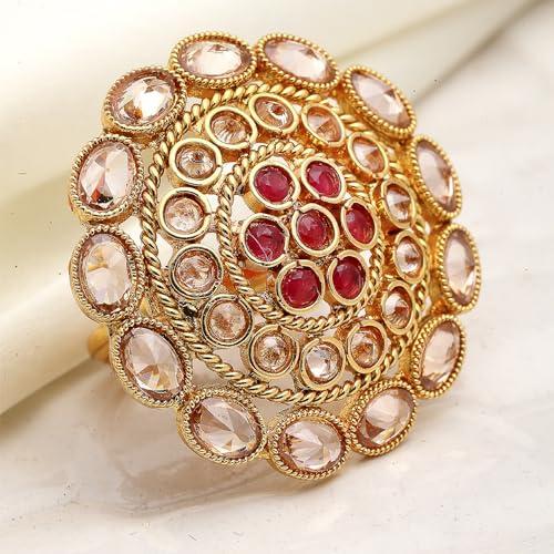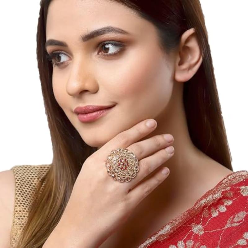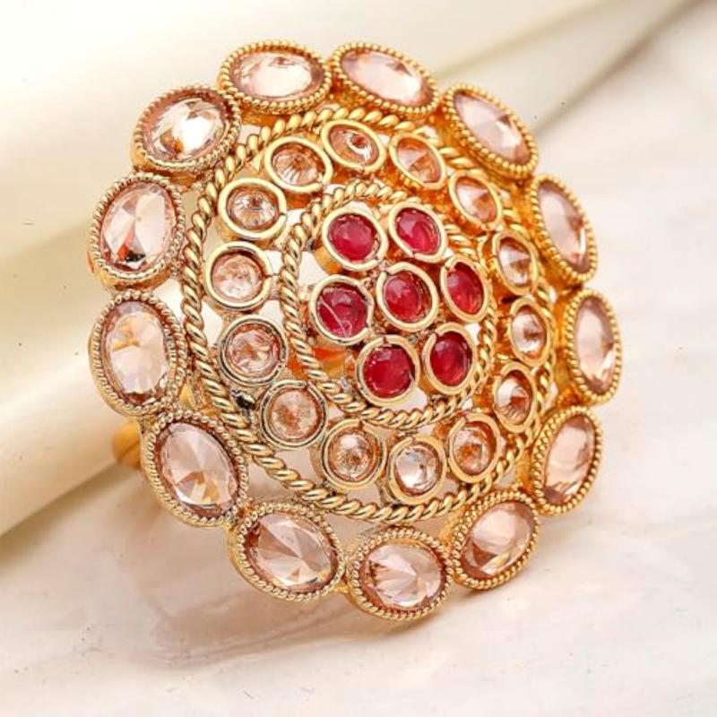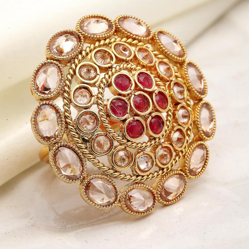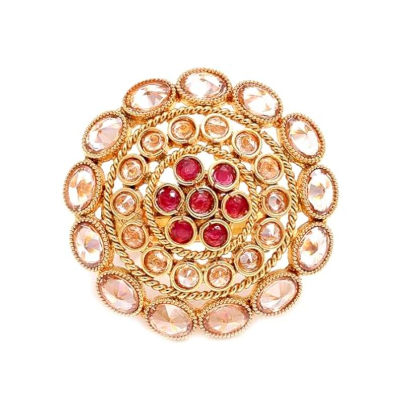 Elegant and timeless cocktail ring featuring a classic design with copper and American diamond stones.